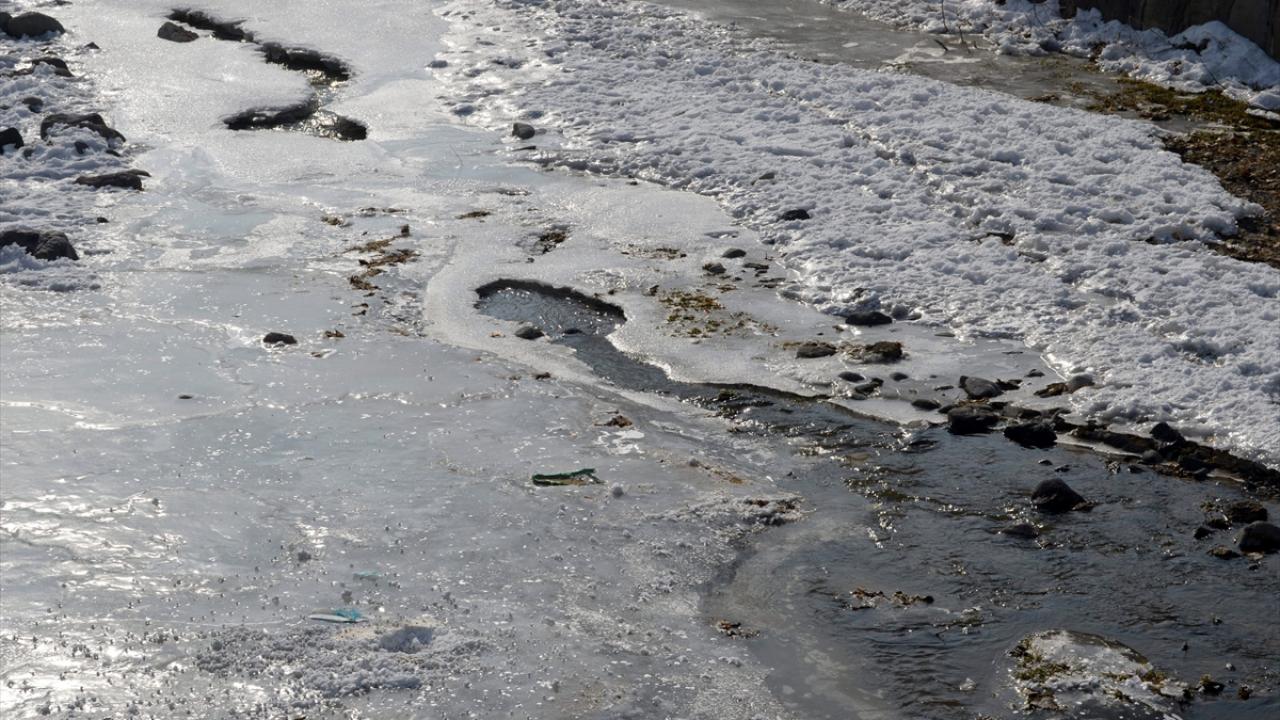 Doğu Anadolu'da dondurucu soğuklar yaşamı olumsuz etkiliyor. Ağrı ve Erzurum'da dereler dondu.