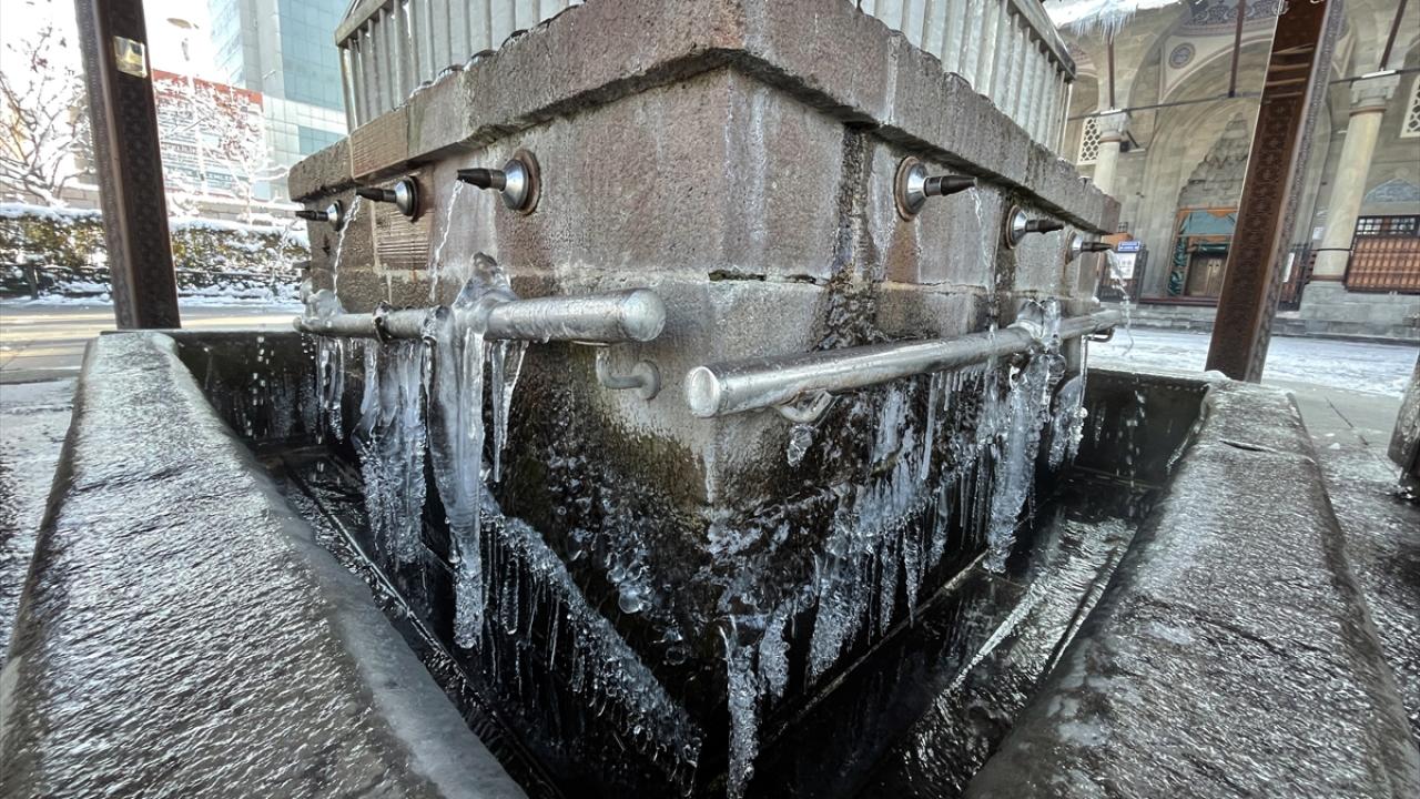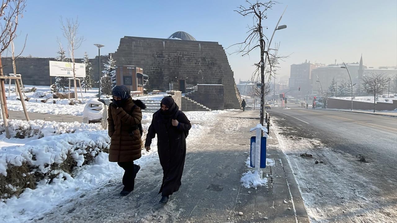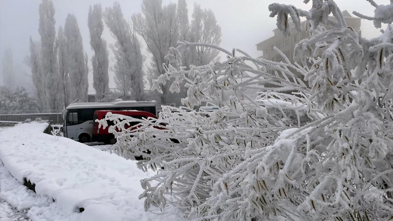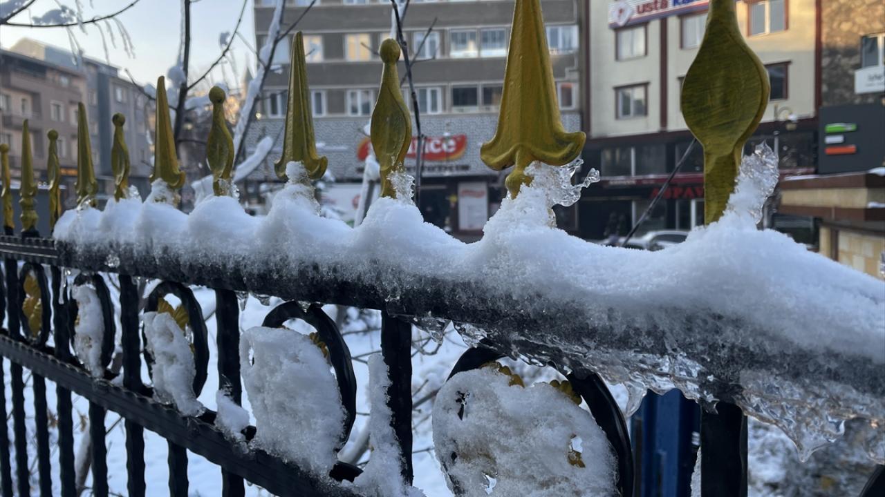 Doğu Anadolu Bölgesi'nde dondurucu soğuklar nedeniyle yol ve kaldırımlarda buzlanma oluşurken, ağaç ve yaprakları kırağı ile kaplandı.