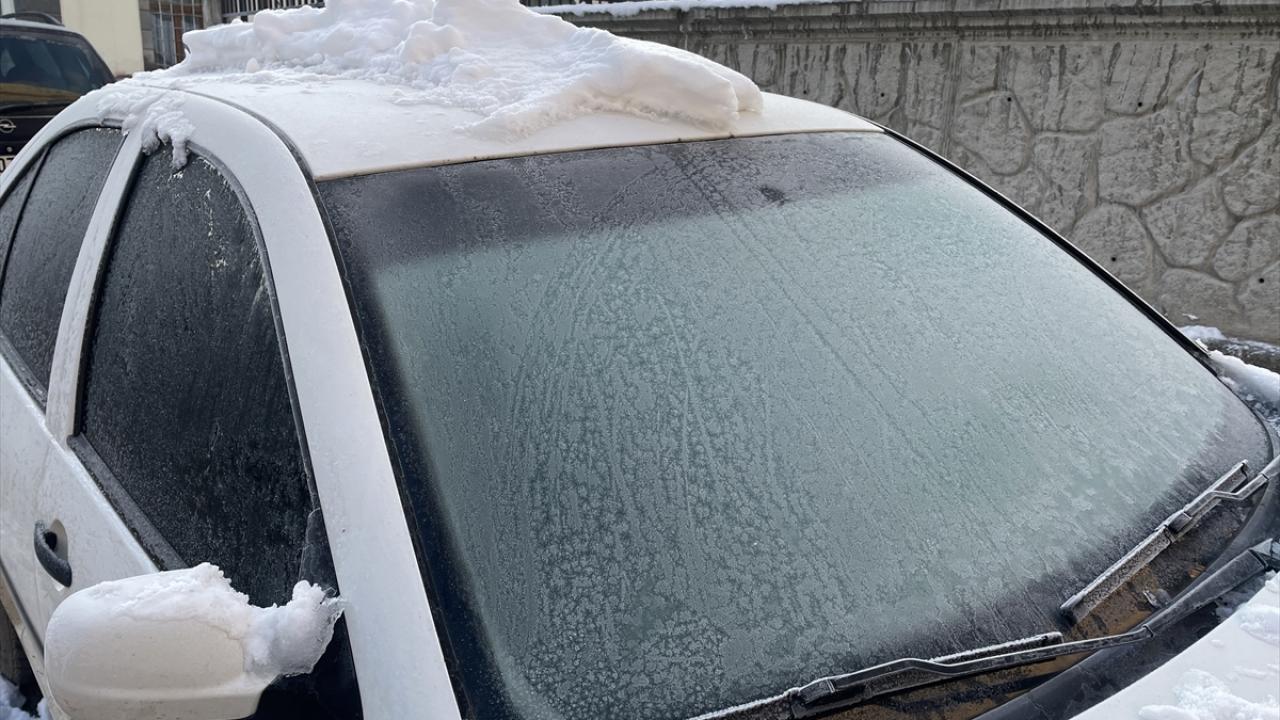 Soğuk hava nedeniyle bazı araçlarda buz ve kırağı oluştu.