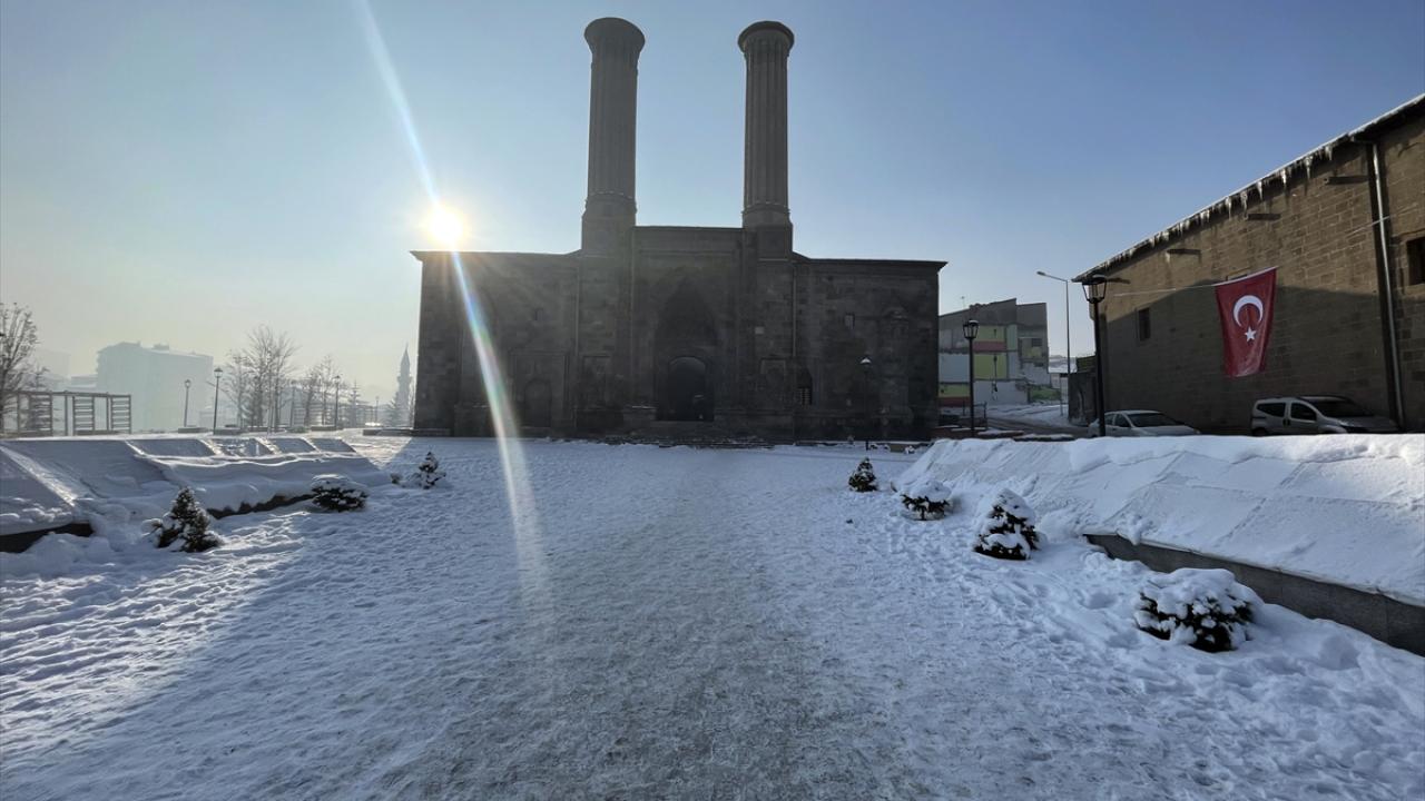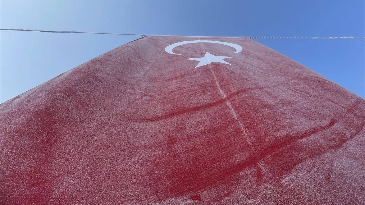 Çifte Minerali Medrese önündeki Türk bayrağı kırağı ile kaplandı.