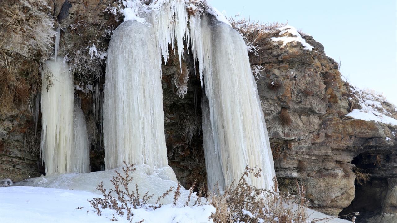 Doğu'da dondurucu soğuklarda 5 metrelik buz sarkıtları oluştu