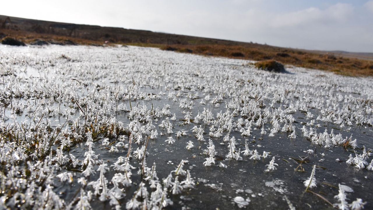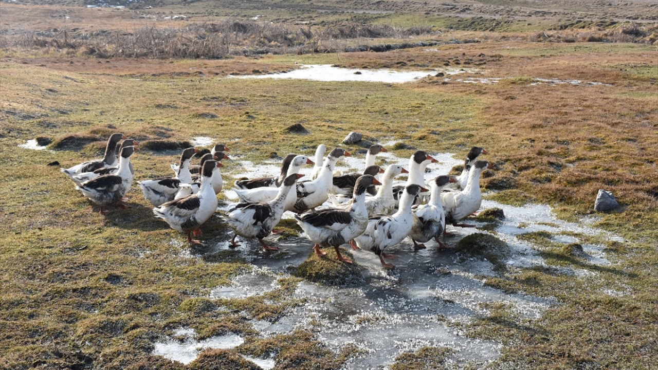 Doğu Anadolu Bölgesi'ndeki 7 ilde gece hava sıcaklığı sıfırın altında ölçüldü. Kars'ın Selim ilçesinde de etkili olan soğuk hava nedeniyle bitkiler kırağı tuttu. Bazı vatandaşlar kazlarını buz tutan dere yatağında gezdirdi.