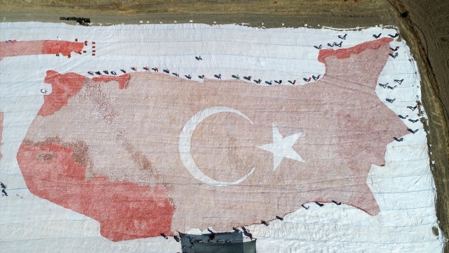 Kurutmalık domateslerle dev Elazığ haritası üzerine ay yıldız figürü yaptılar