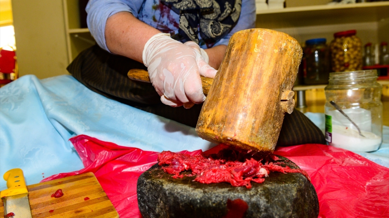 Yemeğin sıradan bir etle hazırlanamayacağını aktaran Bindik, "Köftede kullandığımız etin taze kesilmiş olması, taşta dövülmesi ve aynı gün içinde yemek olarak hazırlanması lazım. Köfteyi taş üstünde tokmakla dövüyoruz, içerisine belli baharatlar ekliyoruz ve özellikle kırık nohuttan elde ettiğimiz lapa ile yoğuruyoruz. Köftenin bir diğer özelliği de içerisinde reyhan ve ekşi erik katılmasıdır." diye konuştu.