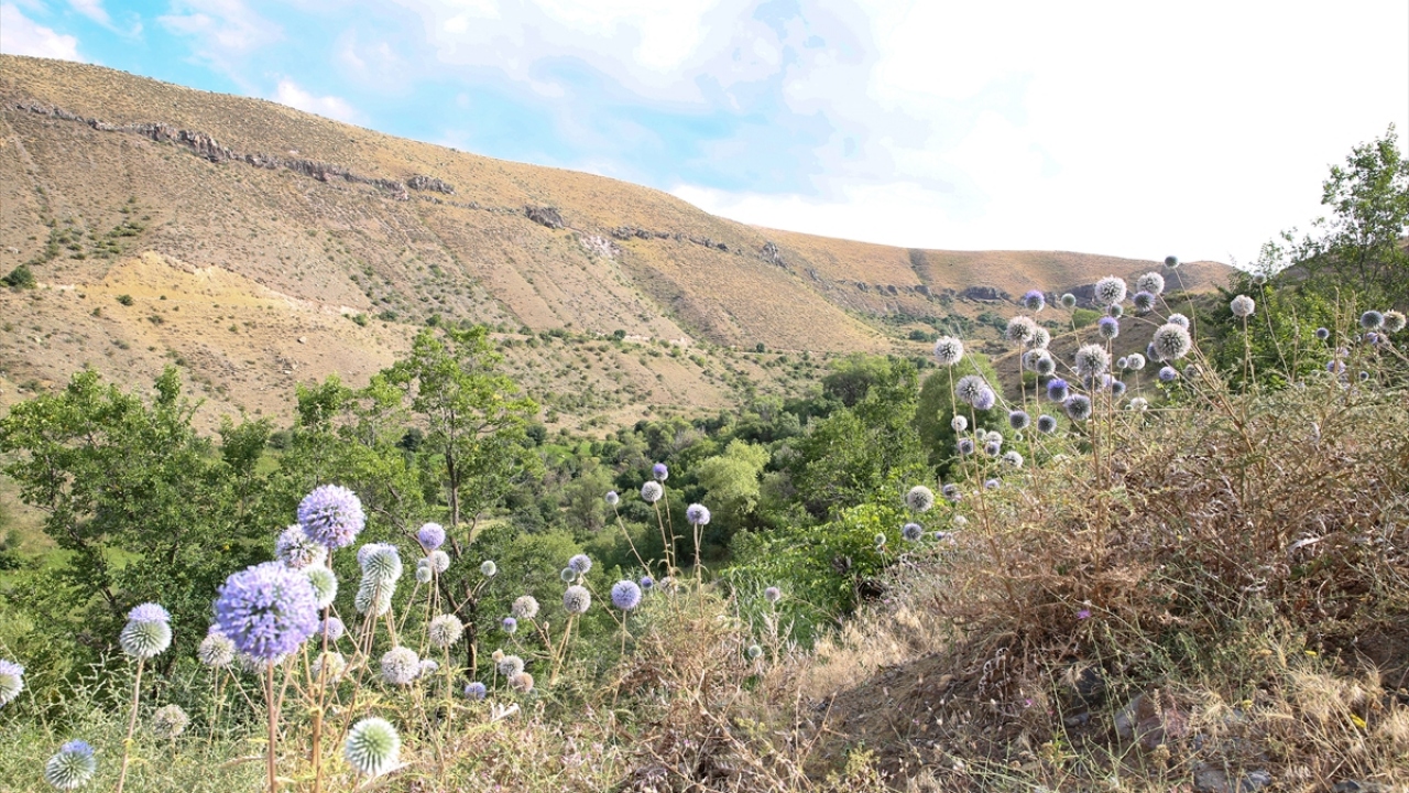 Yüksek kesimli bölgelerin dikenli bitkisi "topuz", Doğu Anadolu'da yetiştiği arazilere adeta renk katıyor.