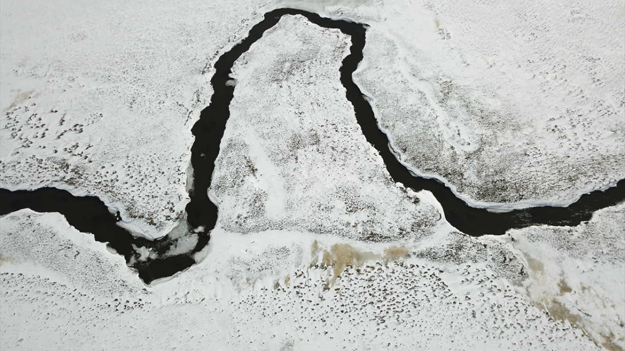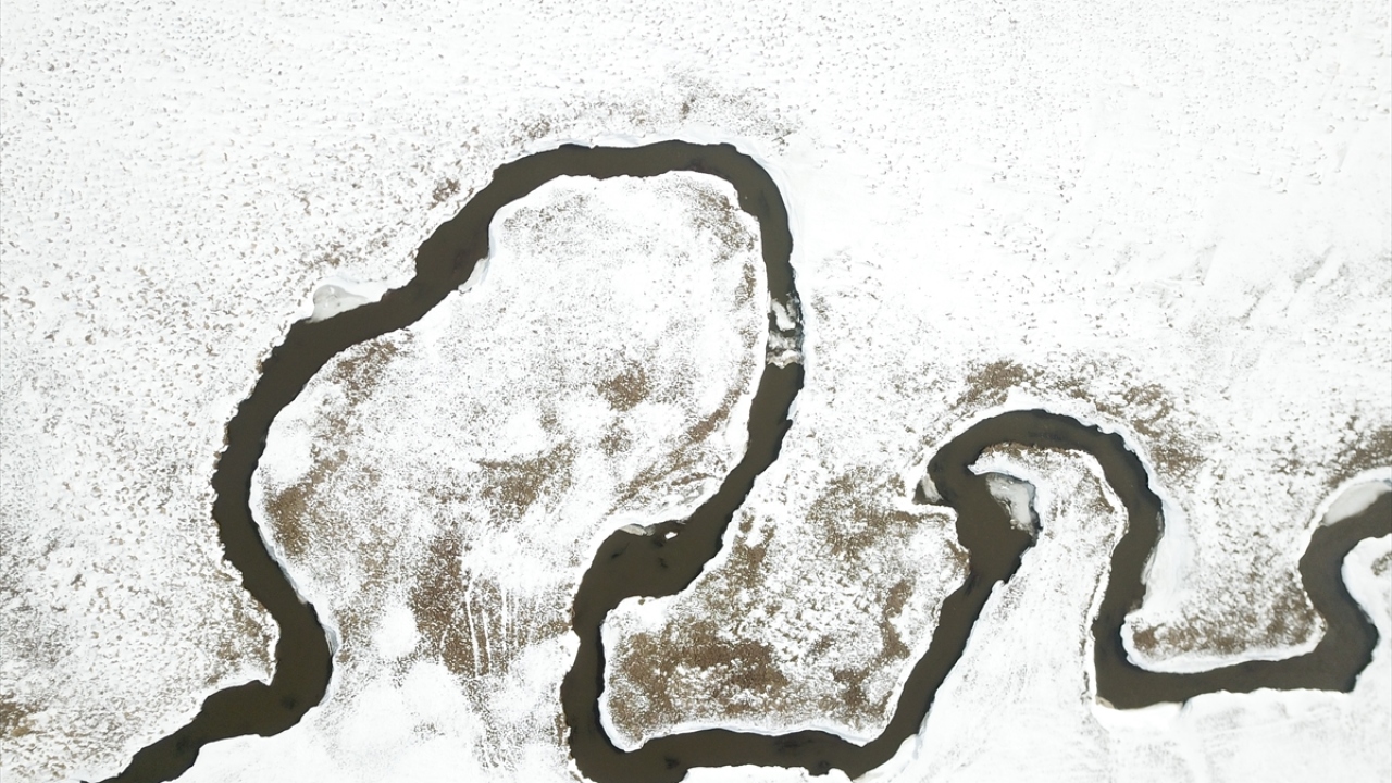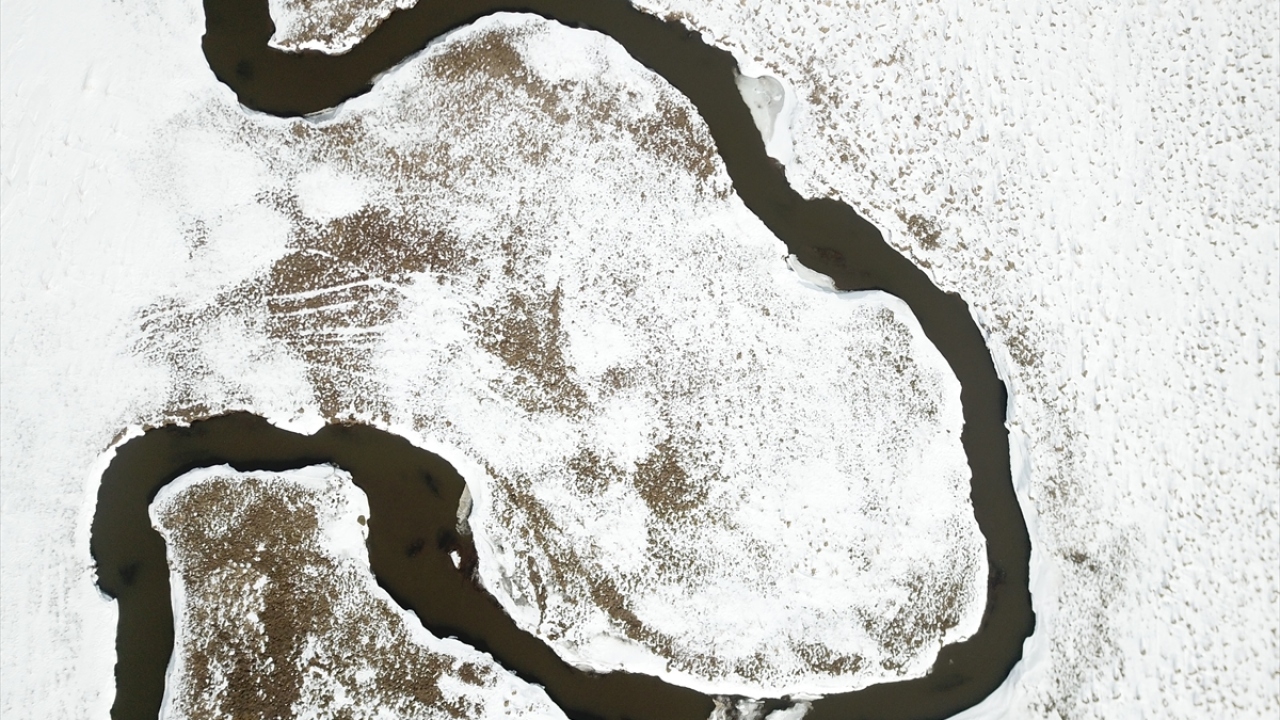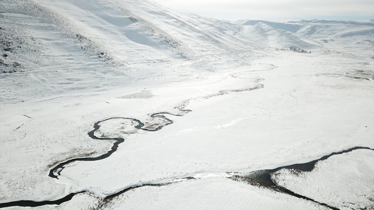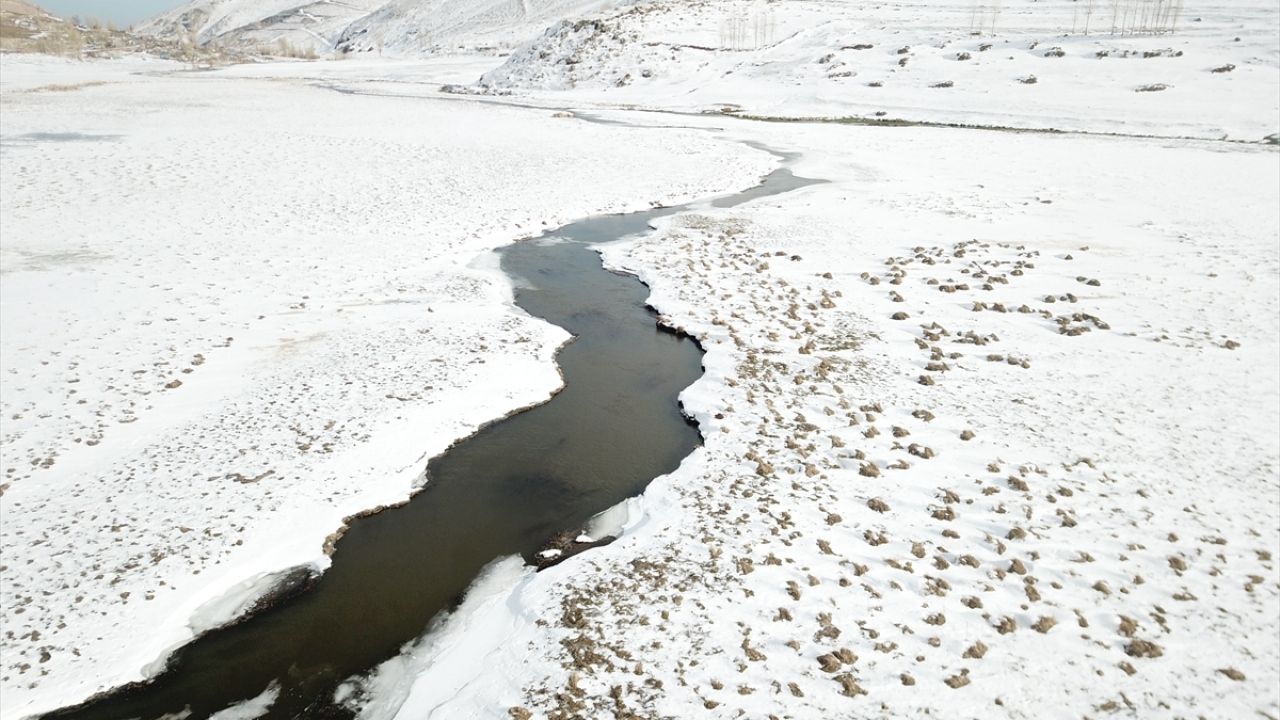 Doğu Anadolu Bölgesi'nde kar yağışı nedeniyle Iğdır'daki Ünlendi Vadisi'nden geçen derenin oluşturduğu menderesler, görsel şölen sundu. Ünlendi Deresi ve geçtiği vadide oluşturduğu menderesler, güzel görüntü oluşturdu.