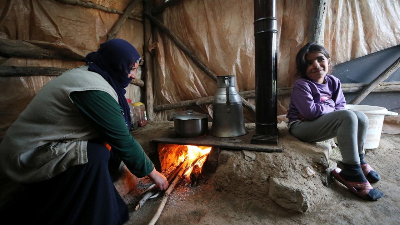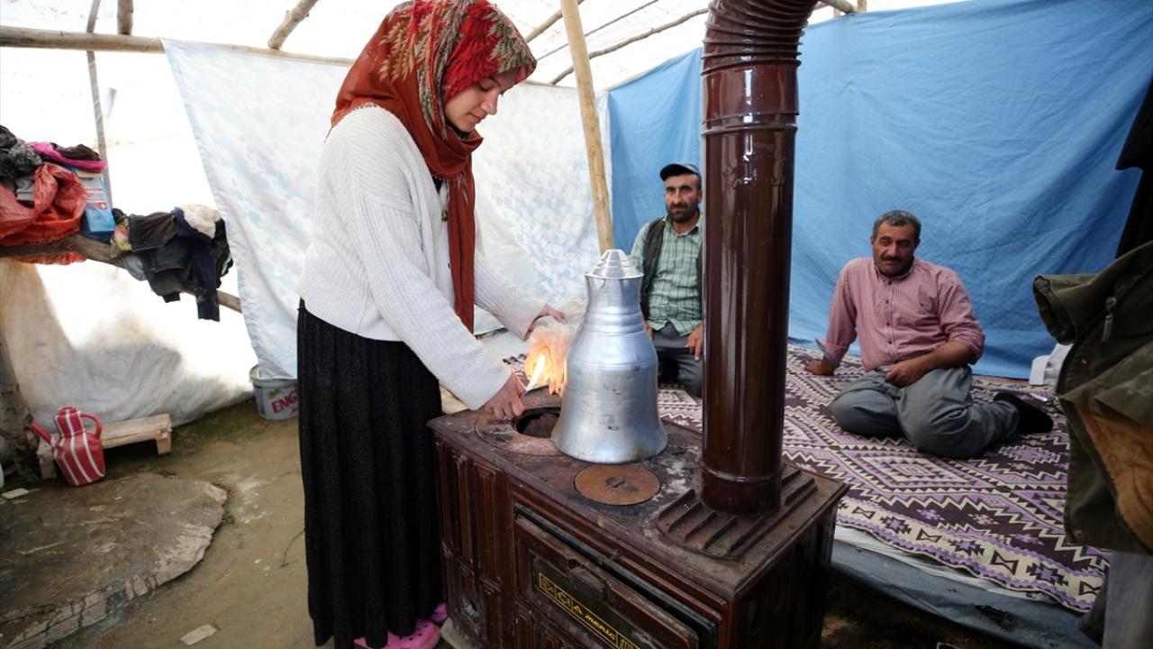Muş'ta hava sıcaklığının düşük olduğu yüksek rakımlı yaylalarda konaklayan göçerler, serin günlerde soba yakarak ısınmaya çalışıyor. Kurtik Dağı'ndaki 2 bin 500 rakımlı yaylada dört ay geçiren göçerler, akşamları çadırlarda kurulan sobanın etrafında toplanıyor.