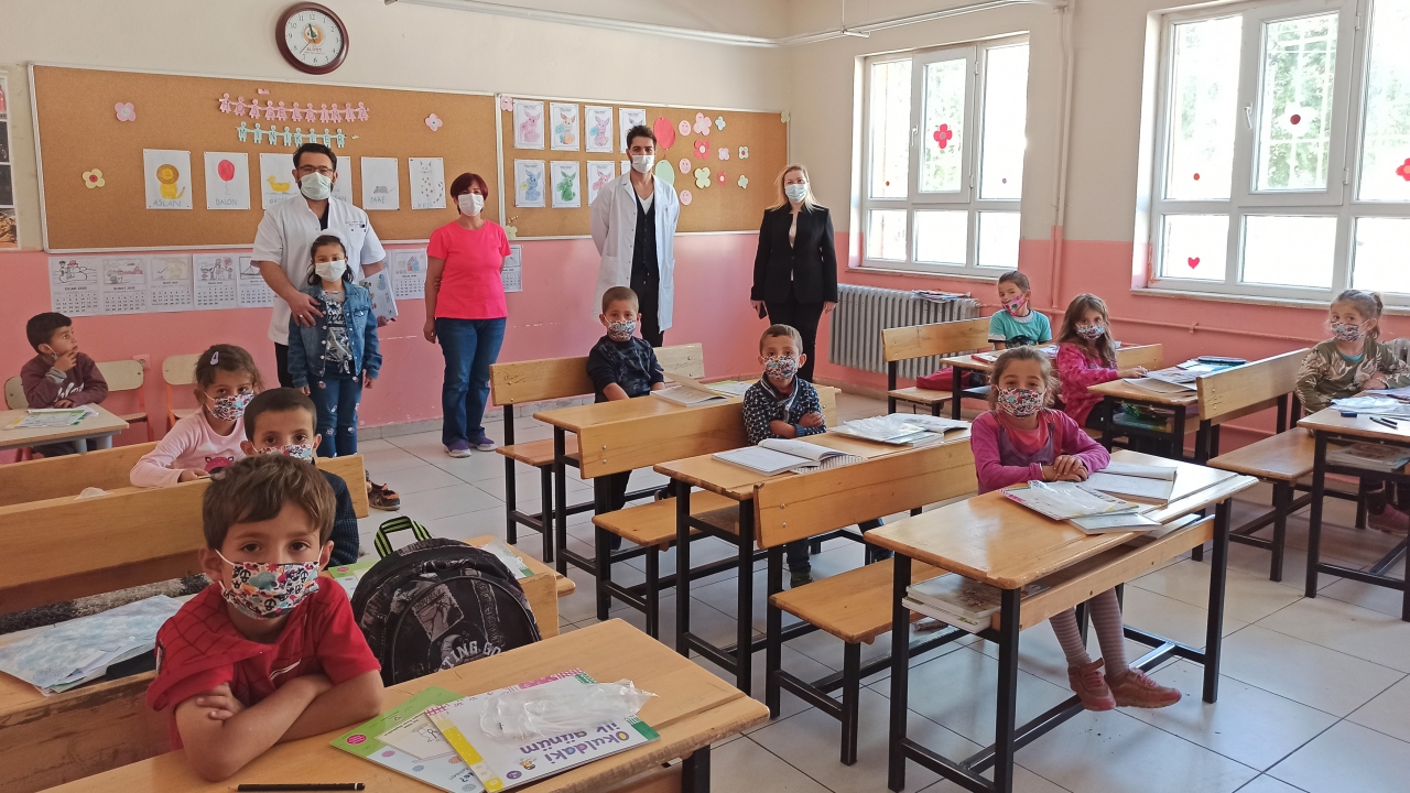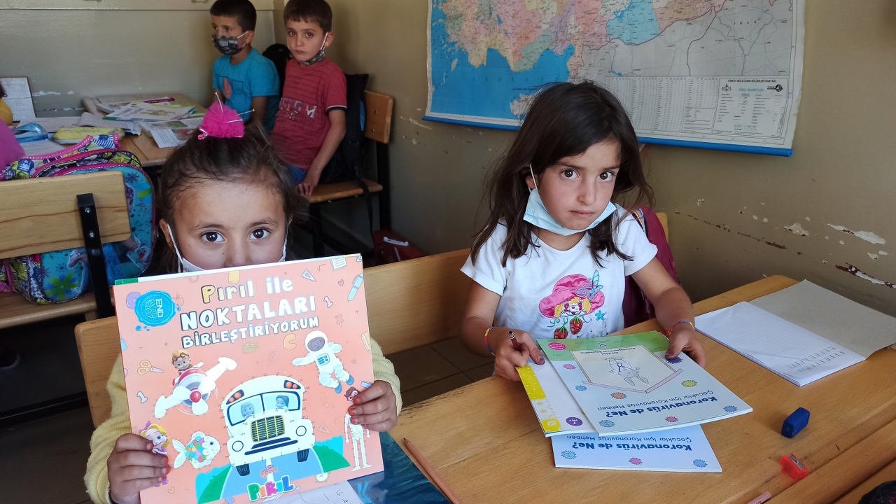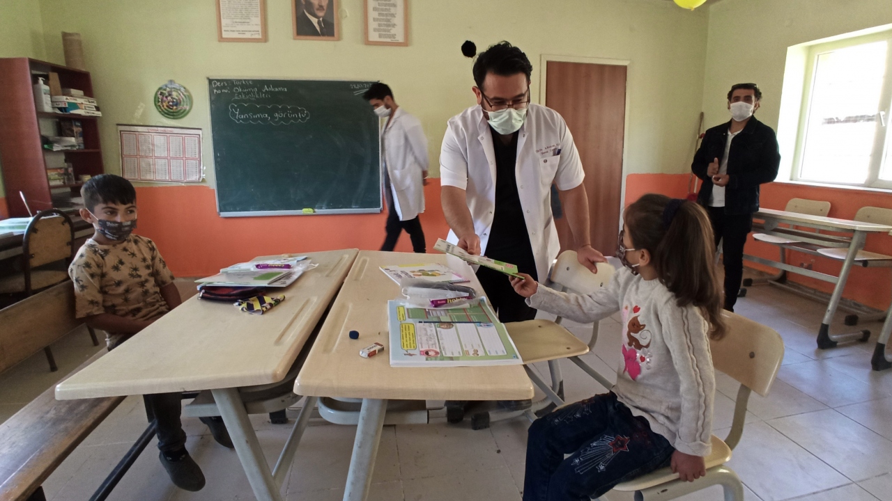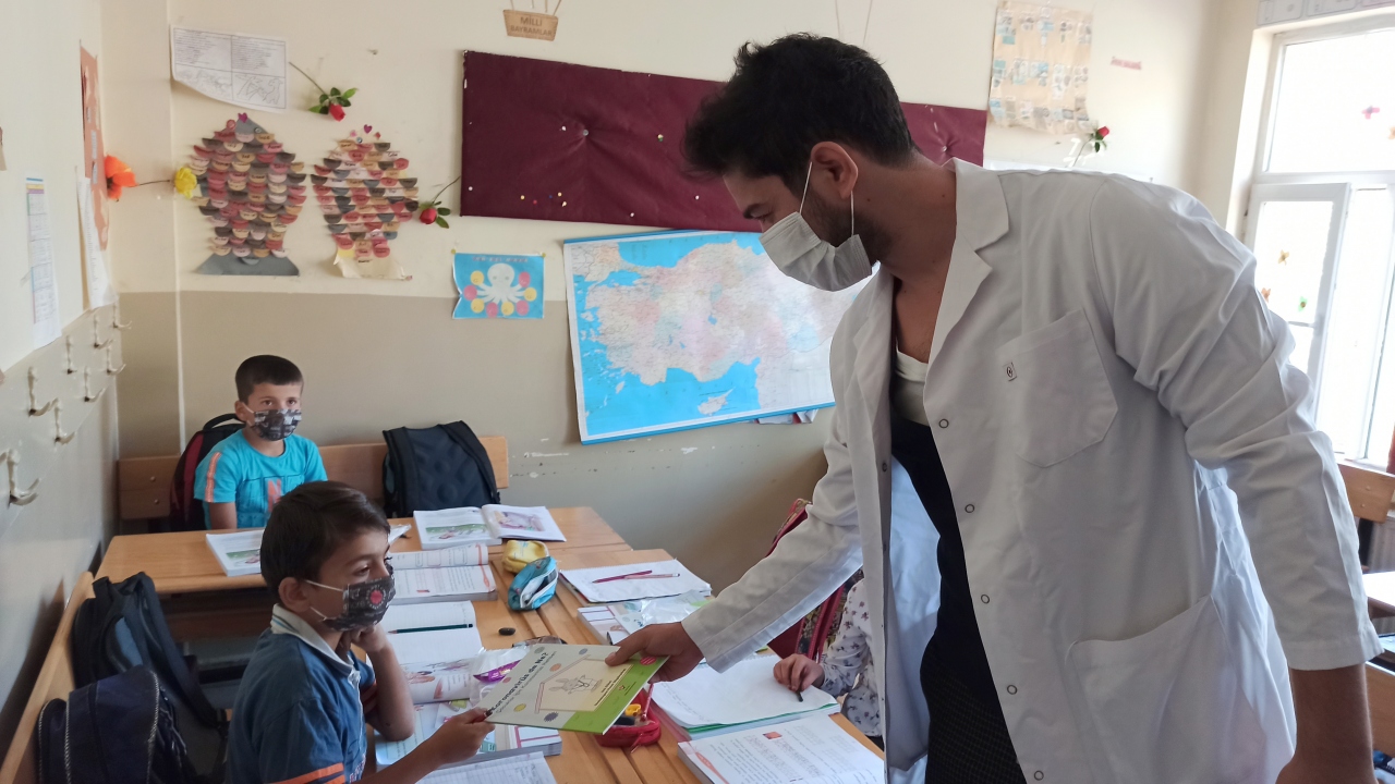 Bitlis’te yeni tip koronavirüs ile mücadele eden doktorlar köy köy dolaşıp öğrencilere kitap dağıtıp, koronavirüs hakkında bilgilendirme yapıyor.
