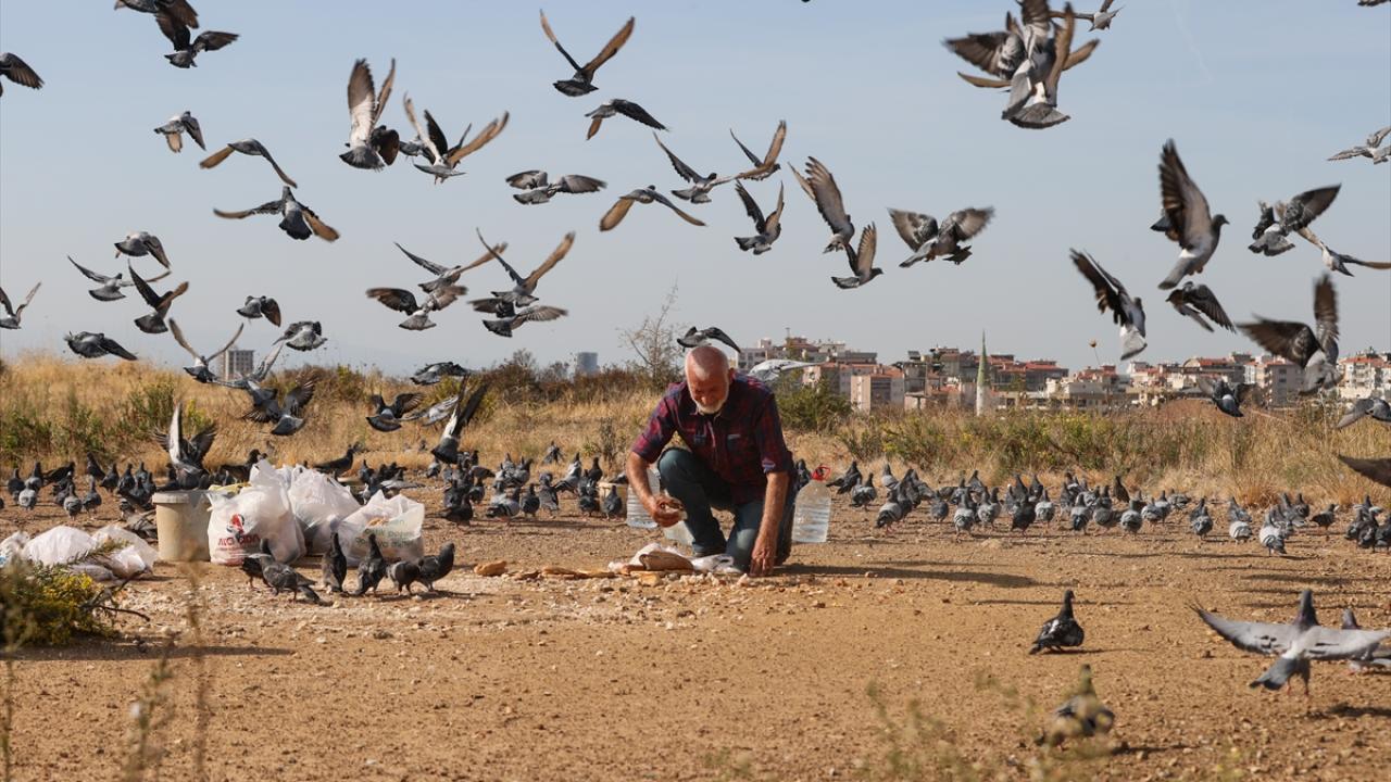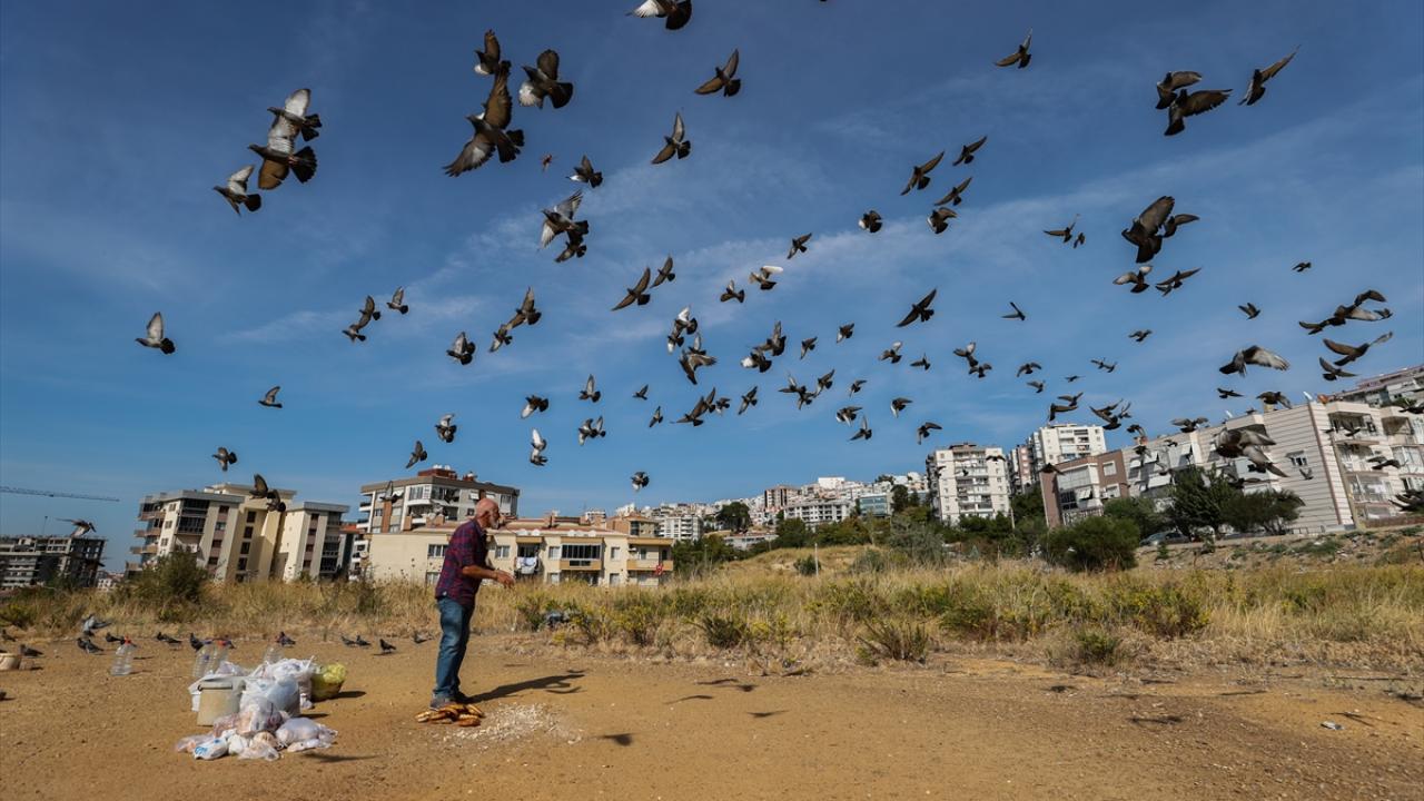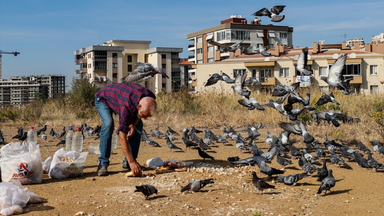İzmir'de, sokağa bırakılan bayat ekmekleri toplayan 70 yaşındaki Osman Güler, bu şekilde hem doktorunun tavsiye ettiği günlük yürüyüşünü tamamlıyor hem de yem bulmakta zorlanan güvercinlerin karnını doyuruyor.