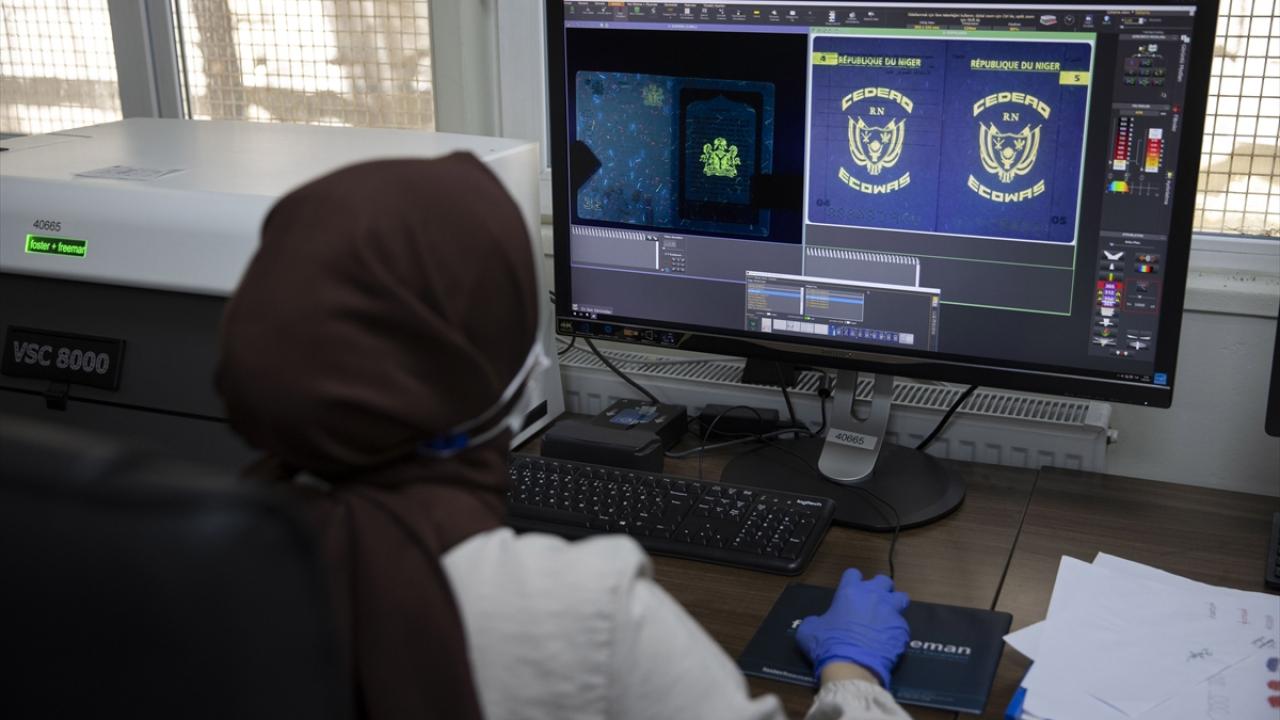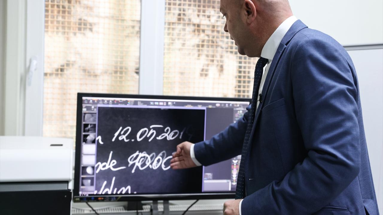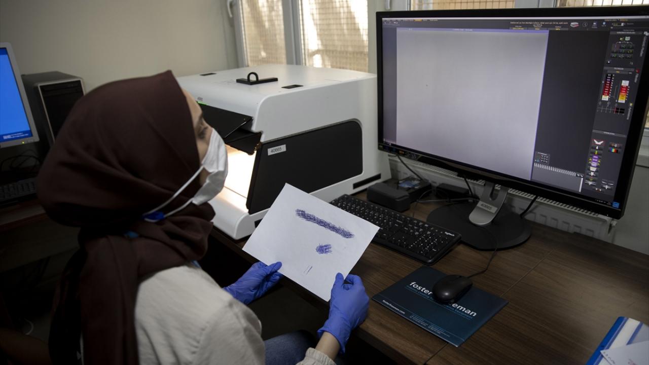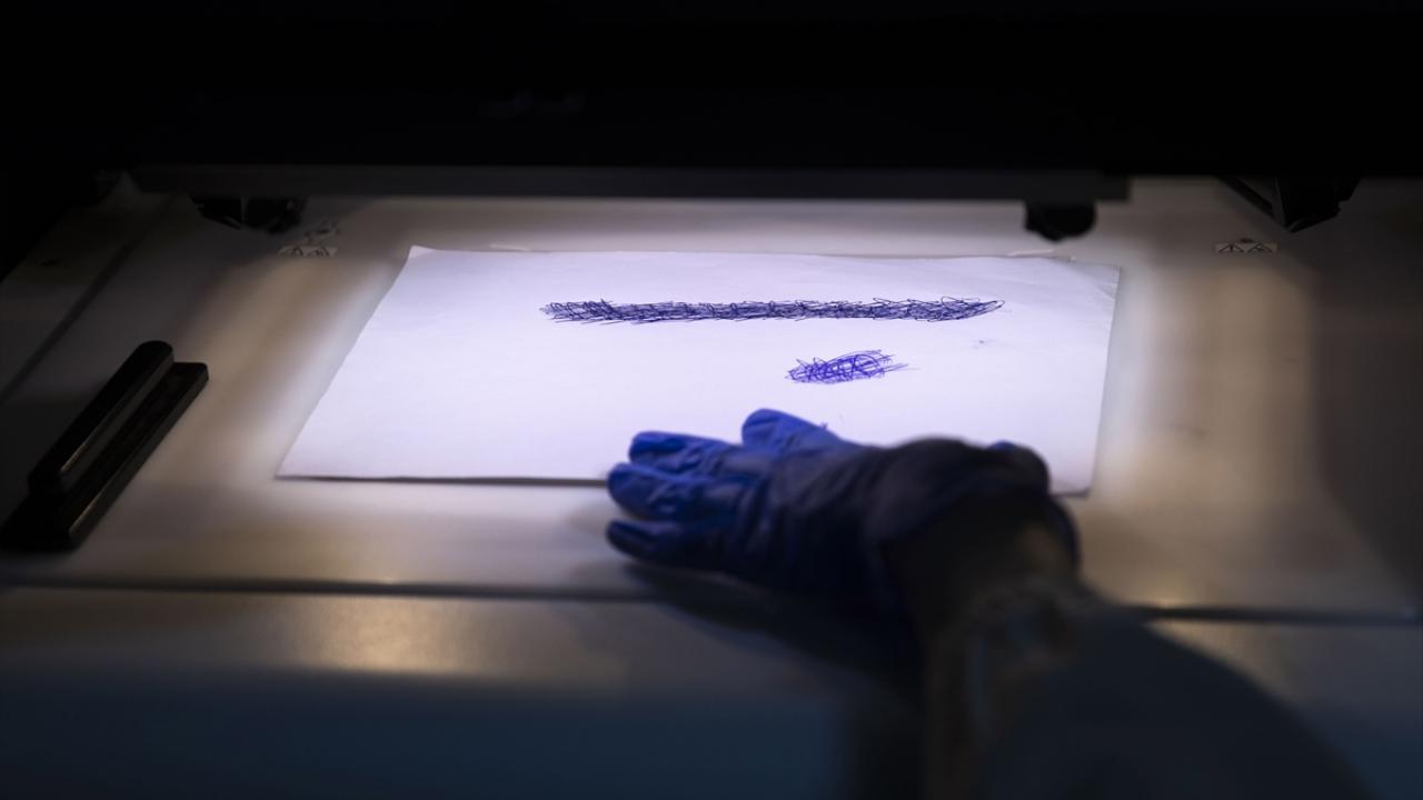 Adli belge inceleme laboratuvarında uzmanlık yapan Nilüfer Şeyda Dursun, çeşitli ışık dalgalarıyla evraklardaki sahtecilik amaçlı değişiklikleri gösteren, dünyanın sayılı laboratuvarında bulunan cihazda hazırlanan örnek evrakları gösterdi.