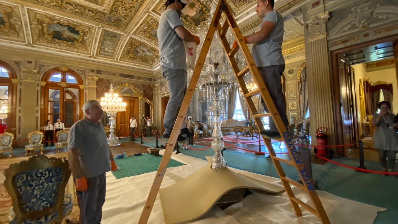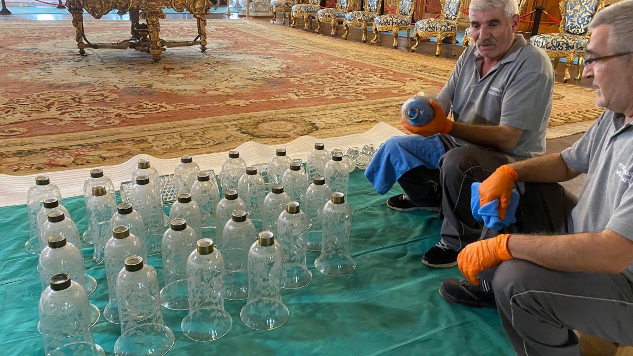 Dolmabahçe Sarayı’nın 166 yıllık kristal şamdanları özel bakıma alındı