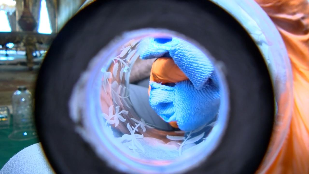Dolmabahçe Sarayı`nın Harem Bölümü`nde periyodik şekilde devam eden çalışmalarla 166 yıllık kristal şamdanlar, tek tek elden geçirilerek gelecek nesillere aktarılıyor.