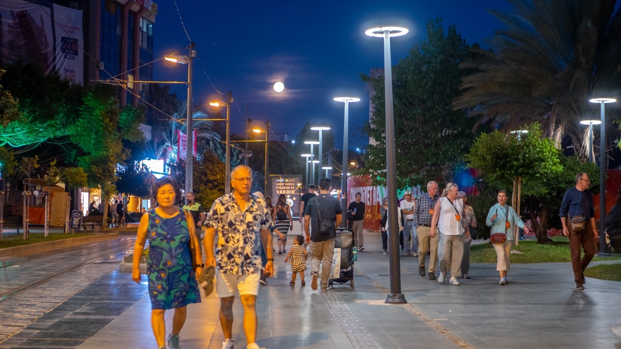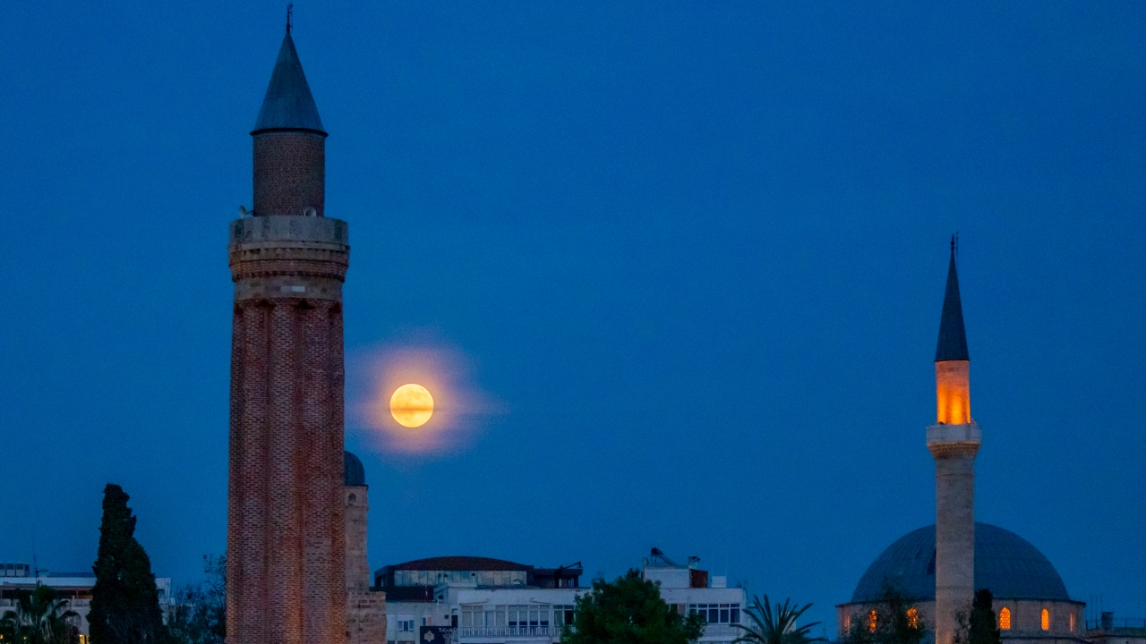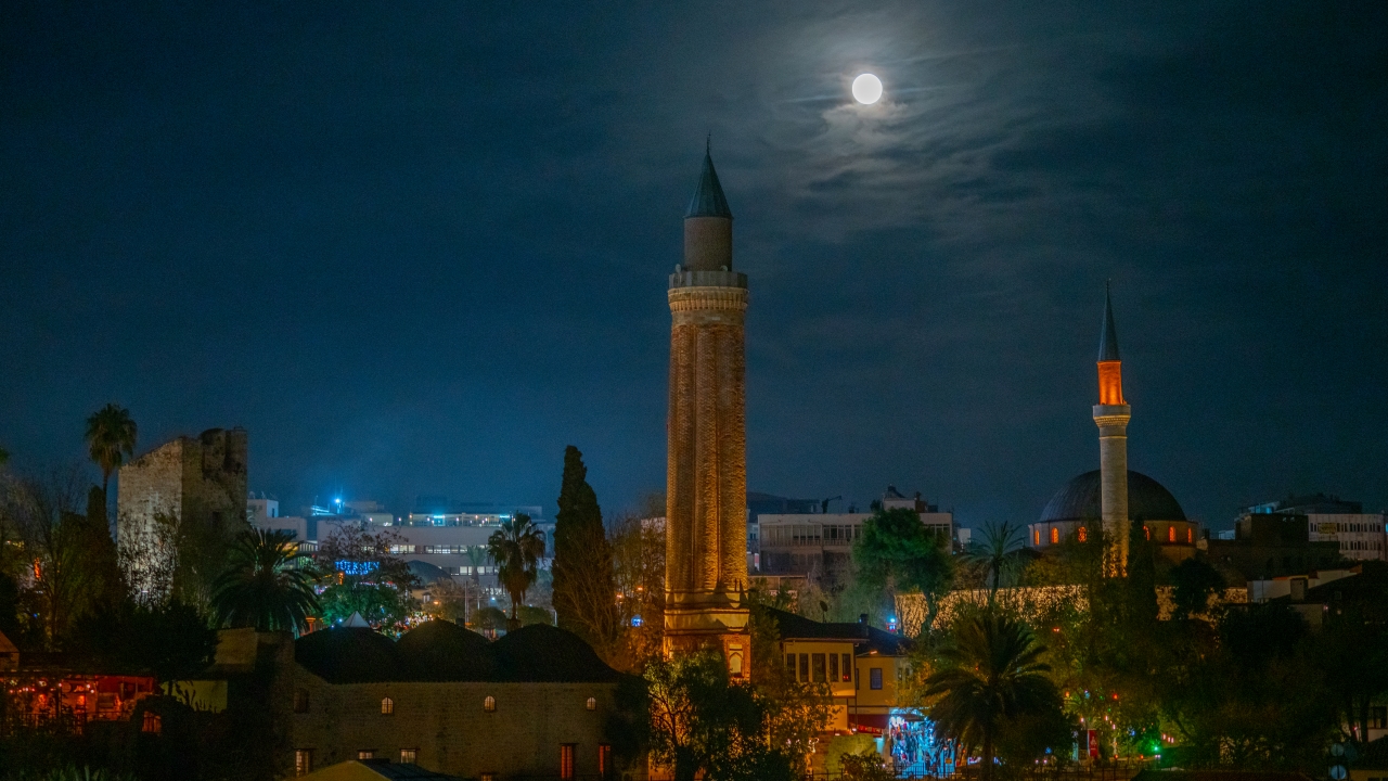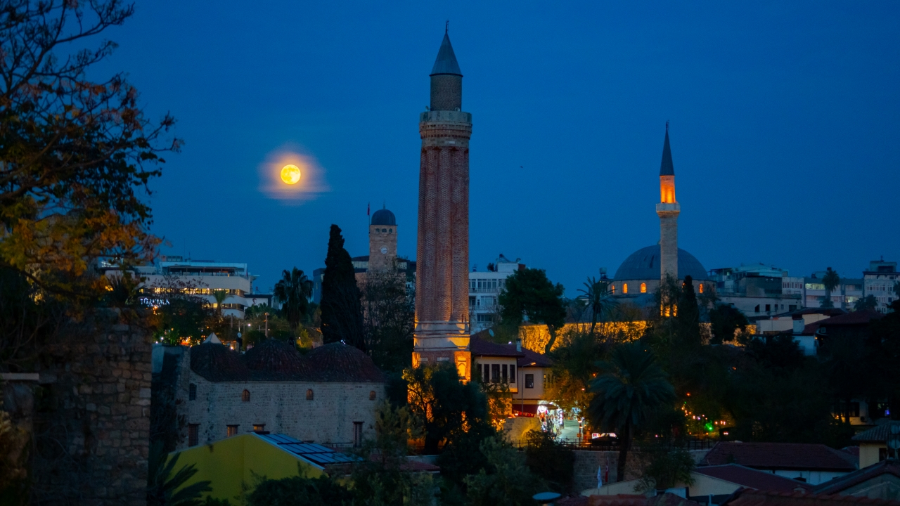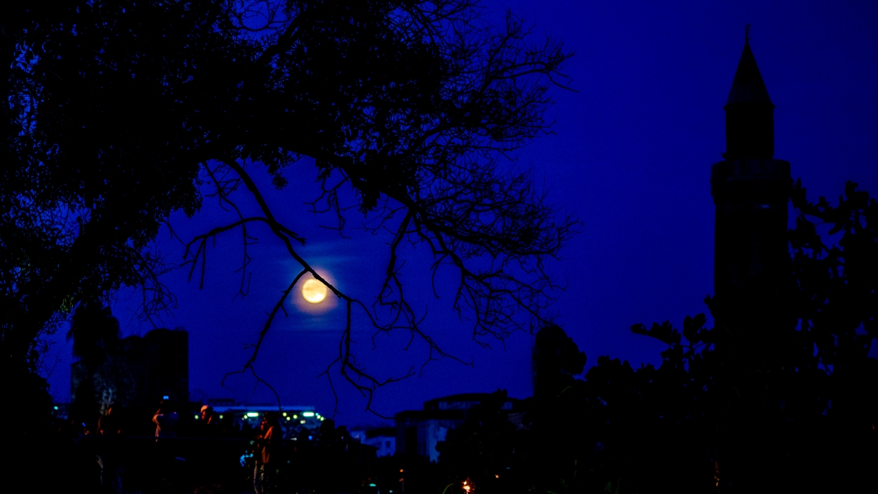 Şehir hareketliliği içinde Antalyalıların karşısına bazen bir bina, bazen ağaçlar ardından çıkıveren "Kunduz Ayı" şehir ışıklarıyla da uyumlu bir görüntü oluşturdu.