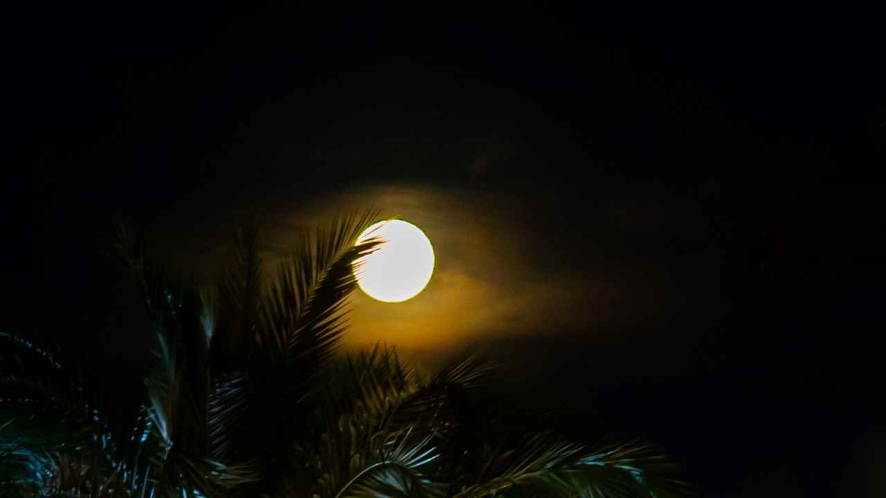Genellikle açık havada yükselişini sürdüren ay zaman zaman ince bir bulut tabakasının arkasında kalarak gökyüzünde farklı renkler oluşturdu.