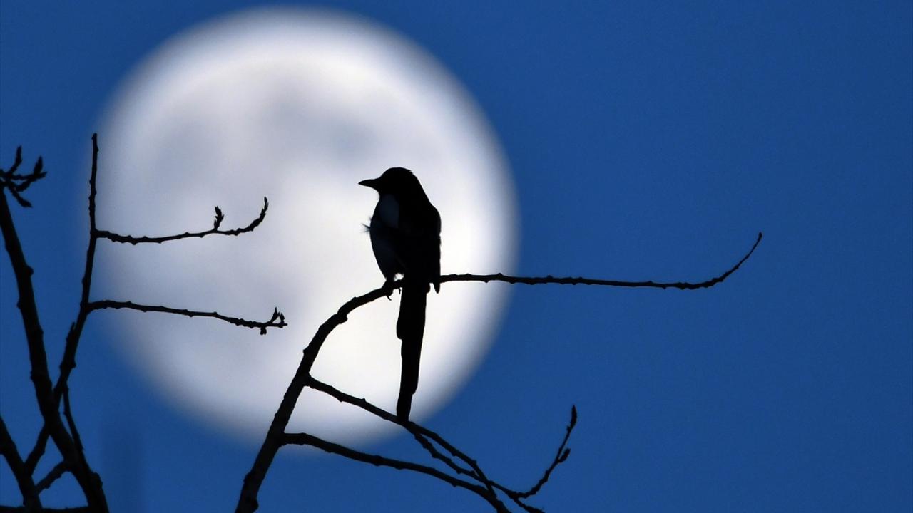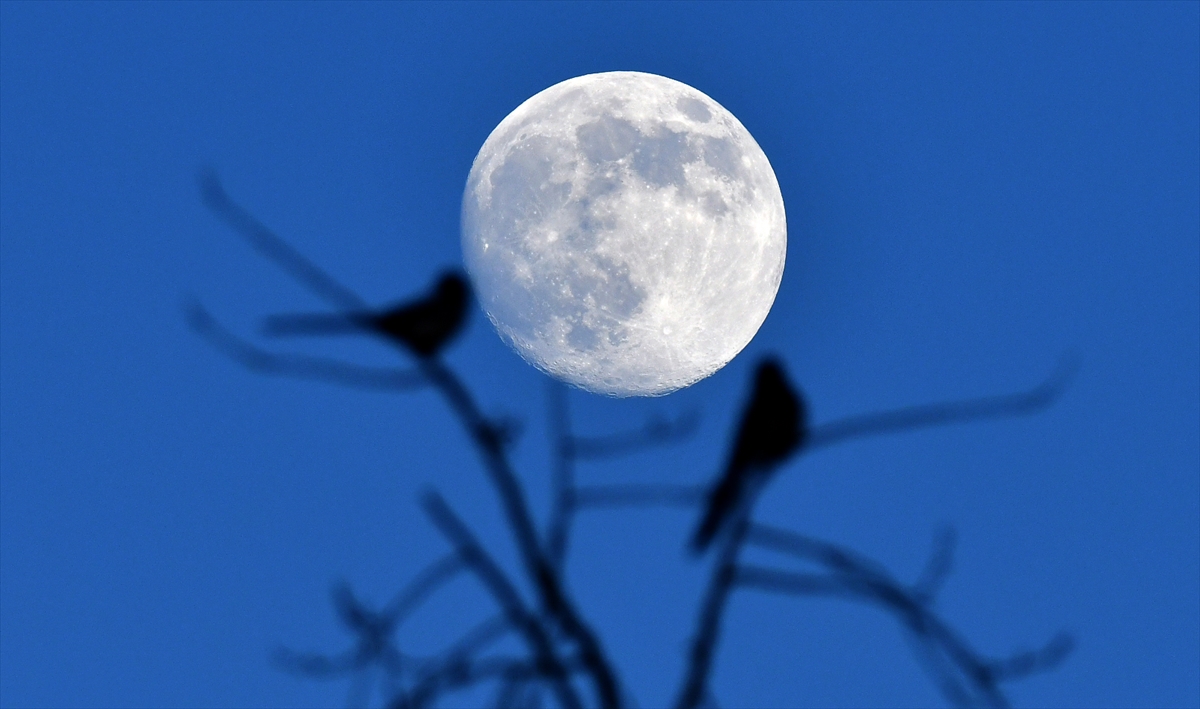 Kars`ın Sarıkamış ilçesinde dolunay, kuşlarla birlikte güzel görüntü oluşturdu.