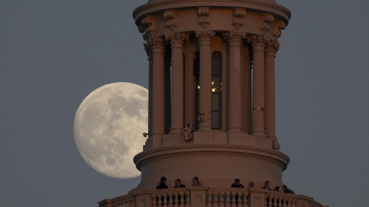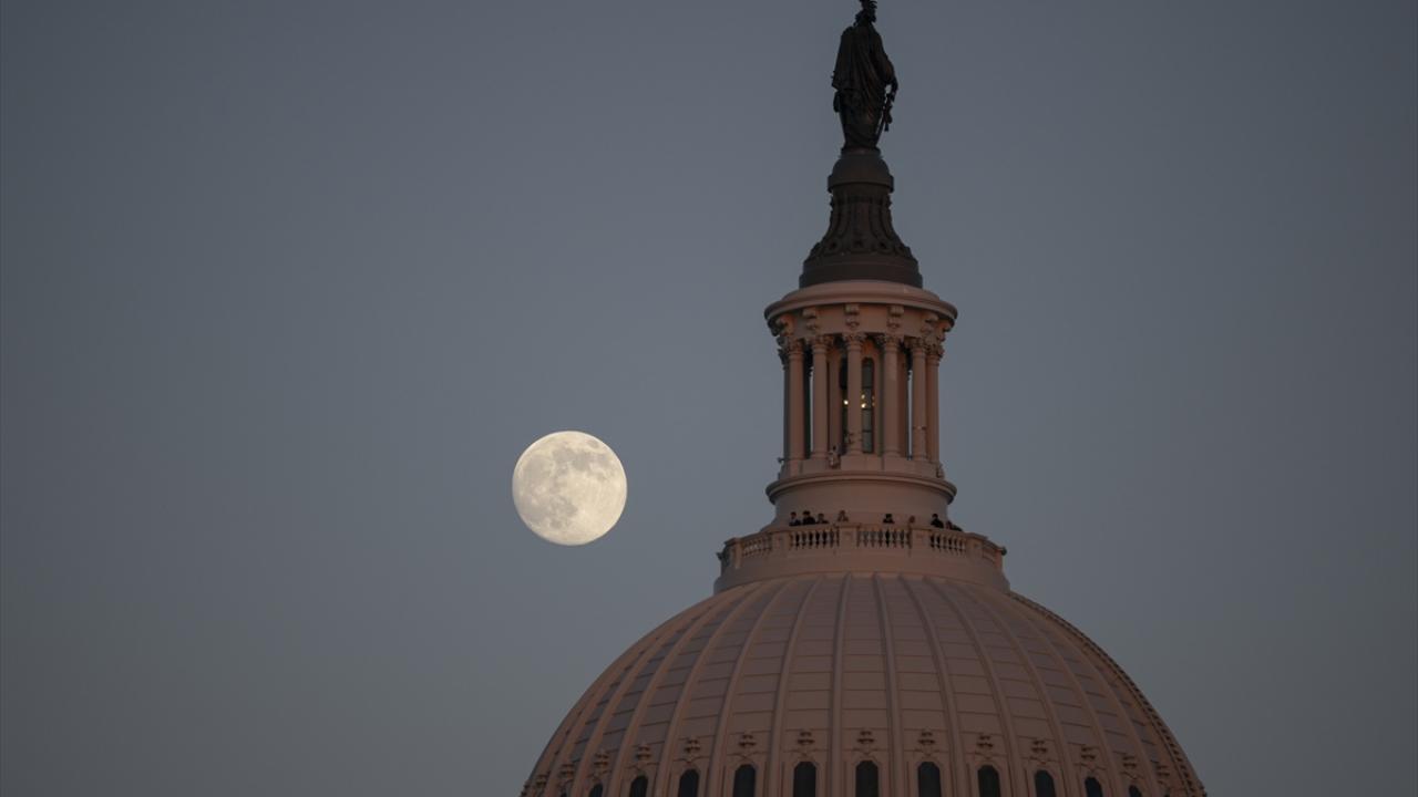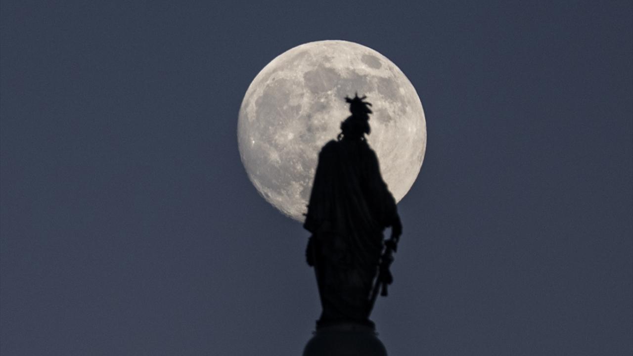 ABD’nin başkenti Washington DC’de, dolunayın Özgürlük Heykeli’nin, Kongre Binası’nın, Washington Anıtı’nın ve Ulysses S. Grant Anıtı’nın üzerinde yükseldiği görüntülendi.