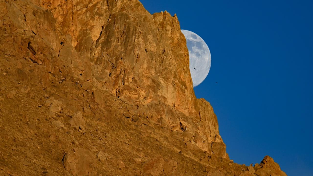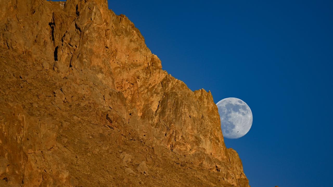 Zirvede görülen yaban keçilerinin dağın arkasından yükselen dolunayla bütünleşmesi seyrine doyum olmayan manzara oluşturdu.