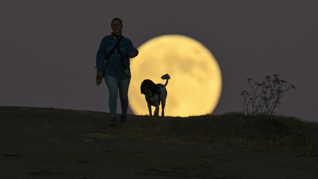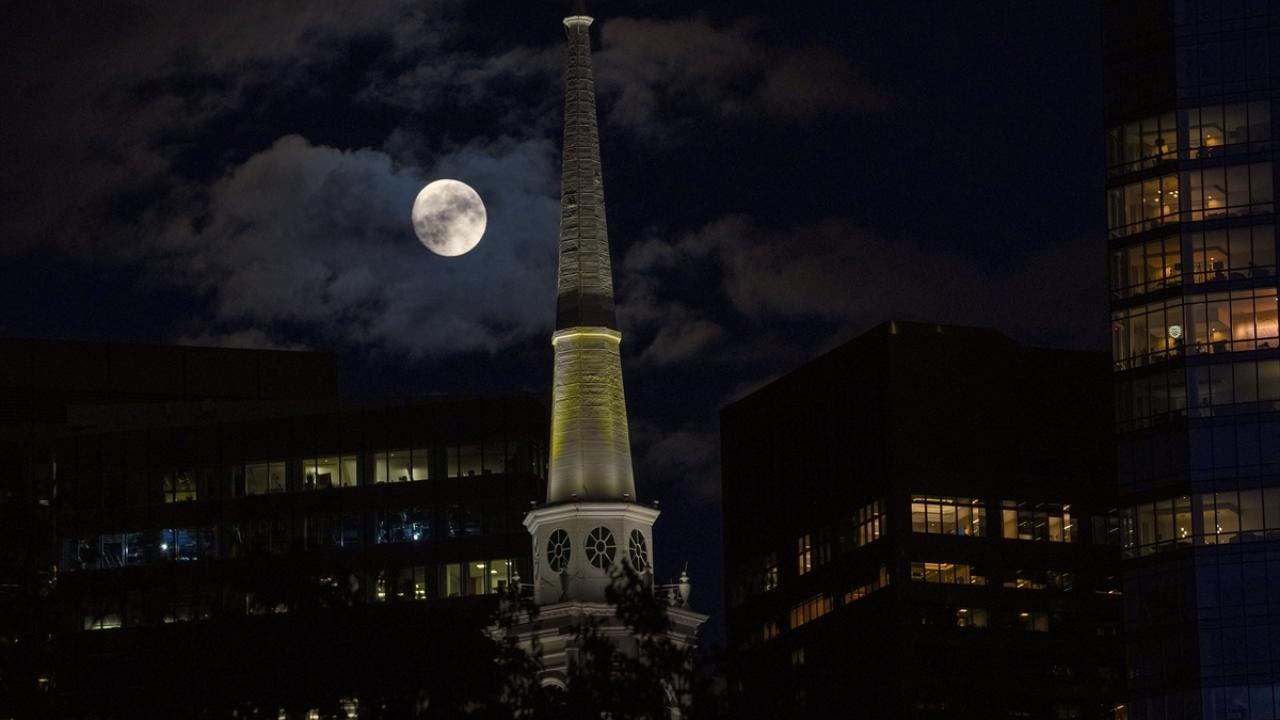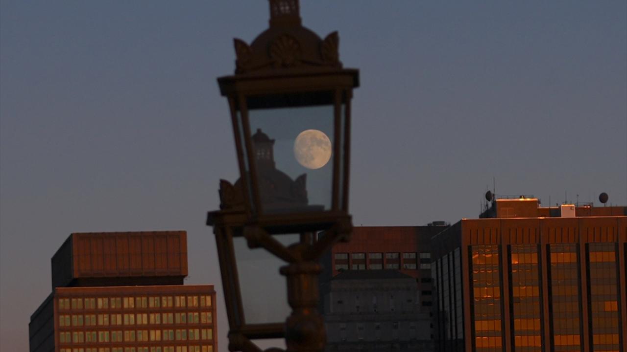 ABD`nin Massachusetts eyaletindeki Boston kentinde akşam saatlerinde beliren dolunay, güzel görüntü oluşturdu.