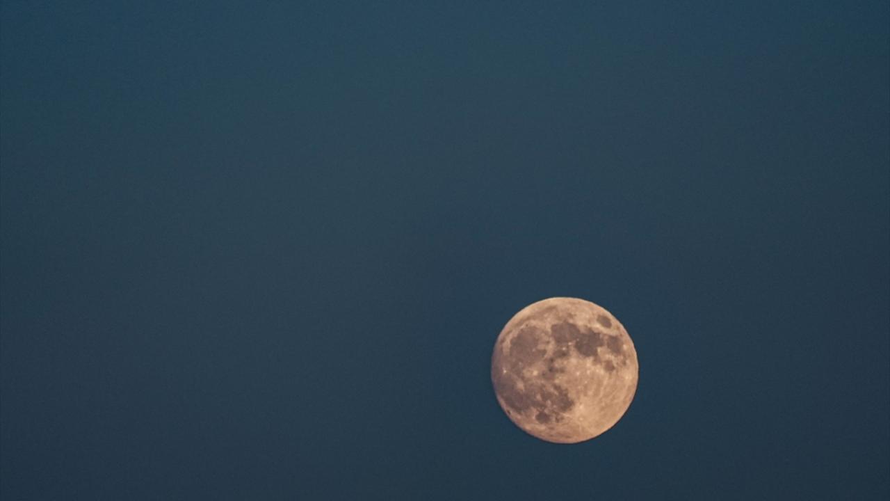 İzmir`in Balçova ilçesinde akşam saatlerinde beliren dolunay, güzel görüntü oluşturdu.