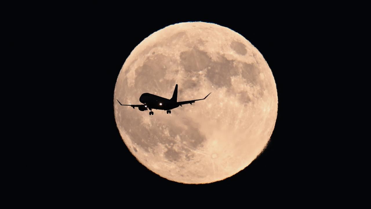 ABD`nin Kaliforniya eyaletine bağlı San Mateo kentinde akşam saatlerinde beliren `Süper Hunter Dolunayı` olarak isimlendirilen dolunay önünden geçen yolcu uçağı güzel görüntüler oluşturdu.