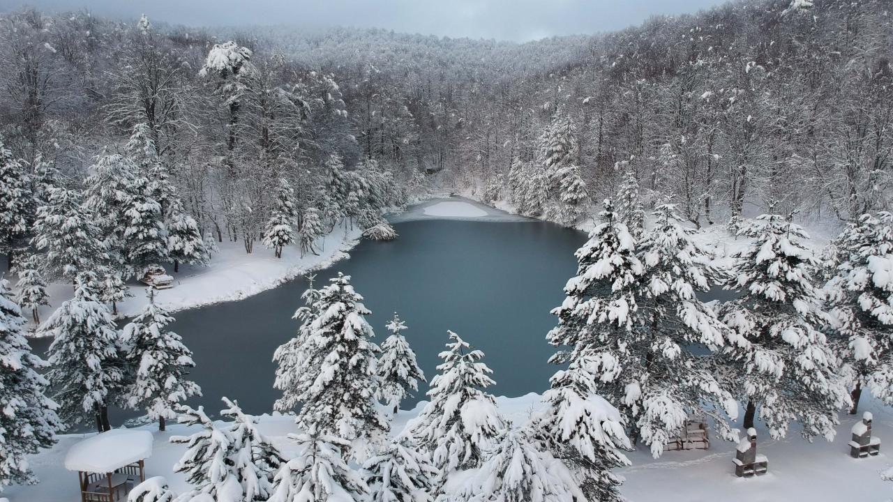 Topuk Yaylası`ndaki Palazoğlu göleti ise dondu.