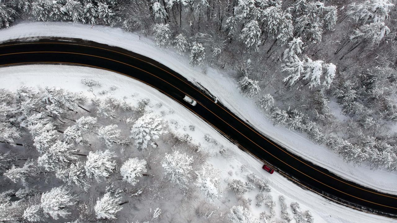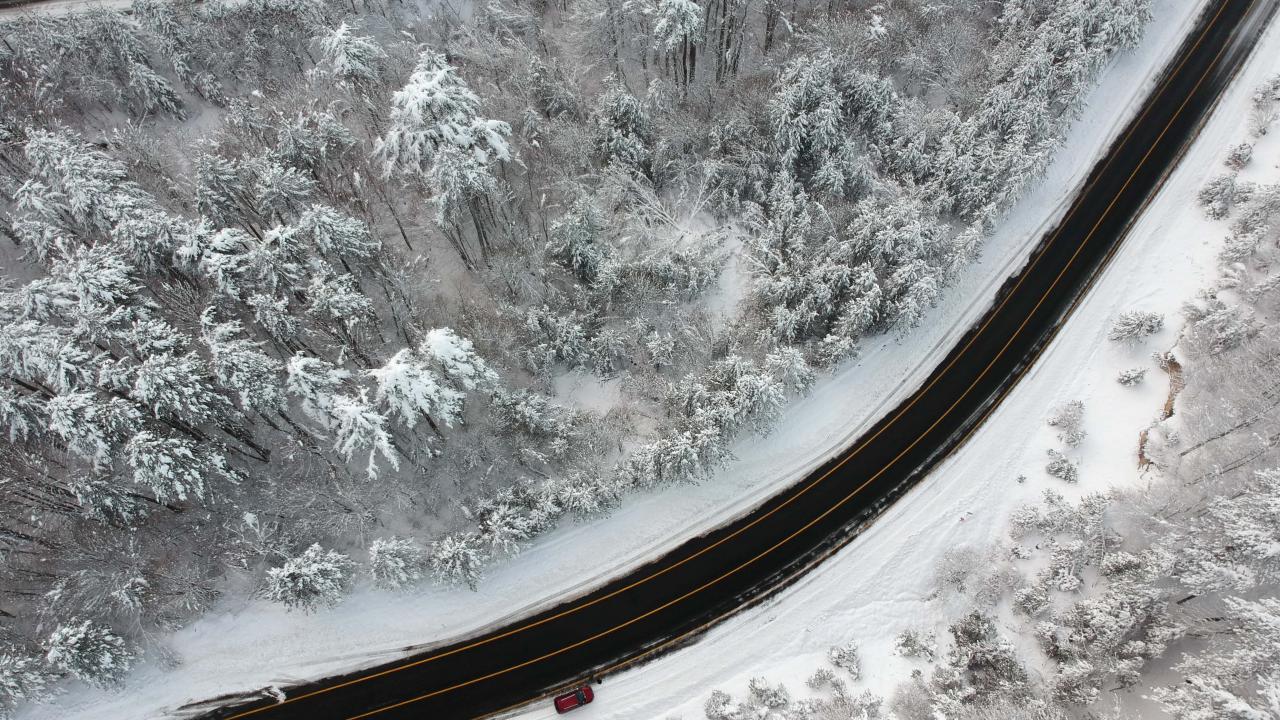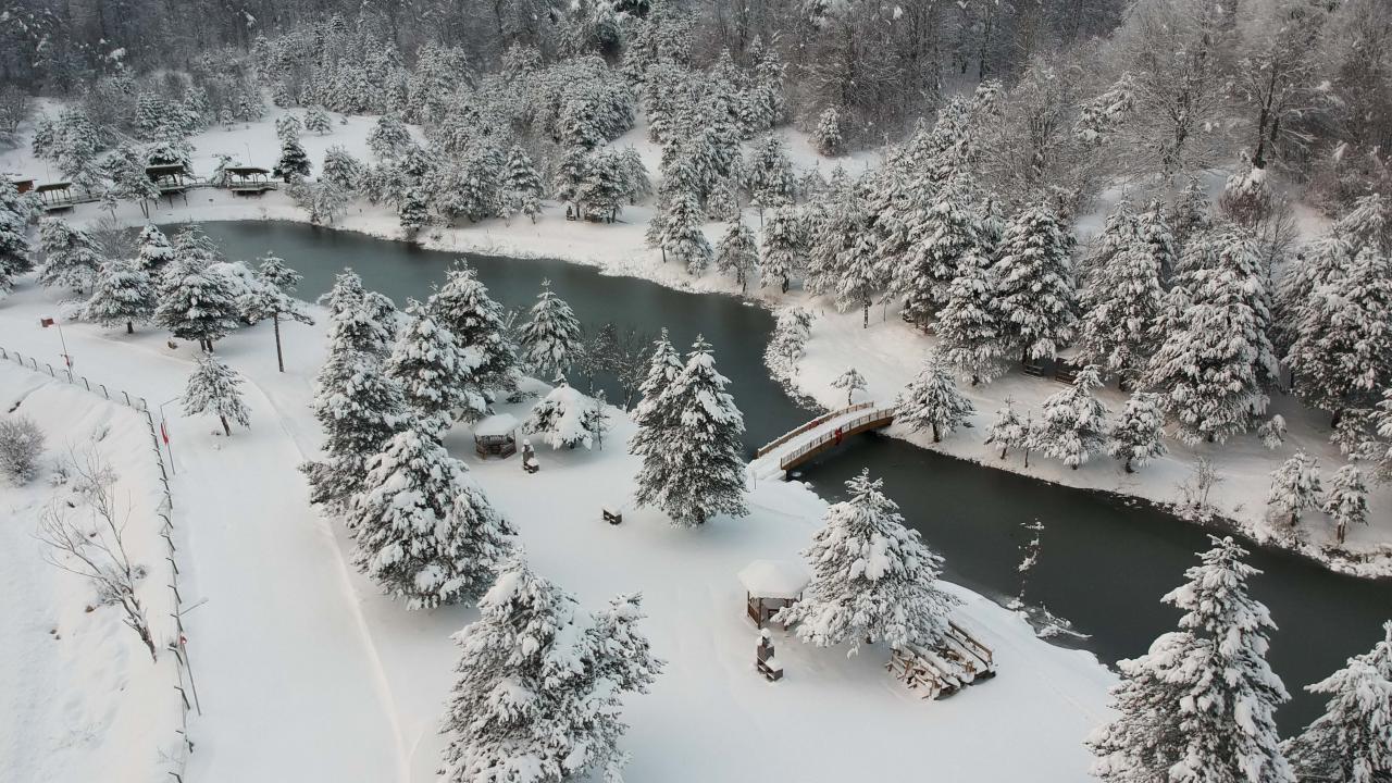 Beyaza bürünen bölge drone ile havadan görüntülendi.