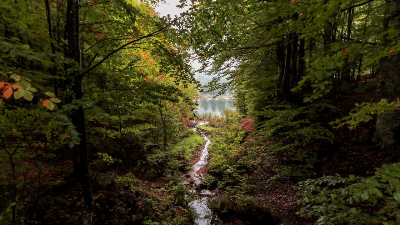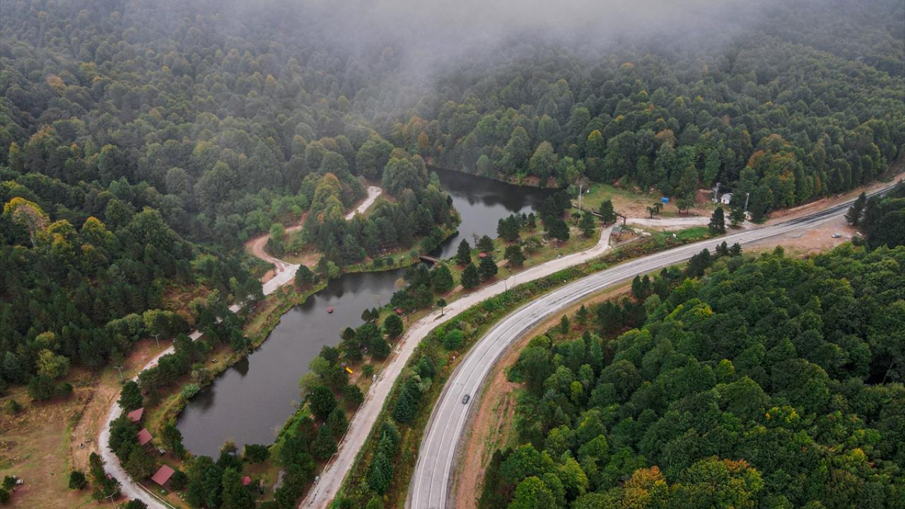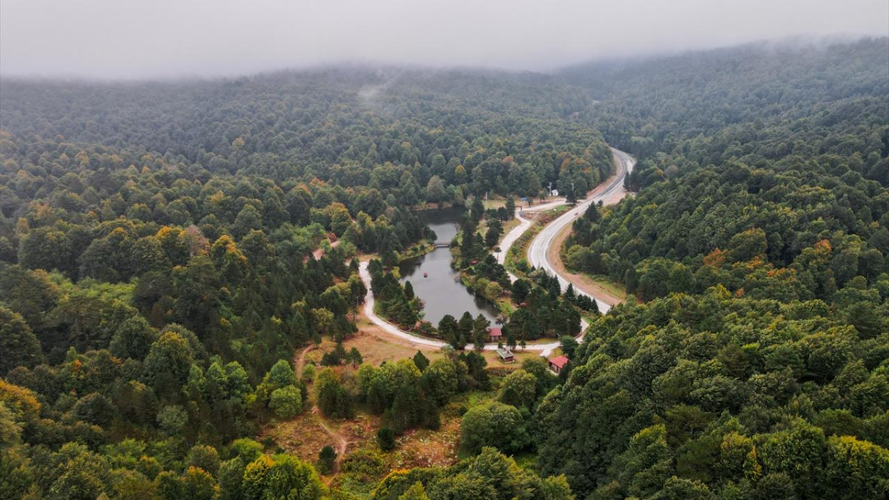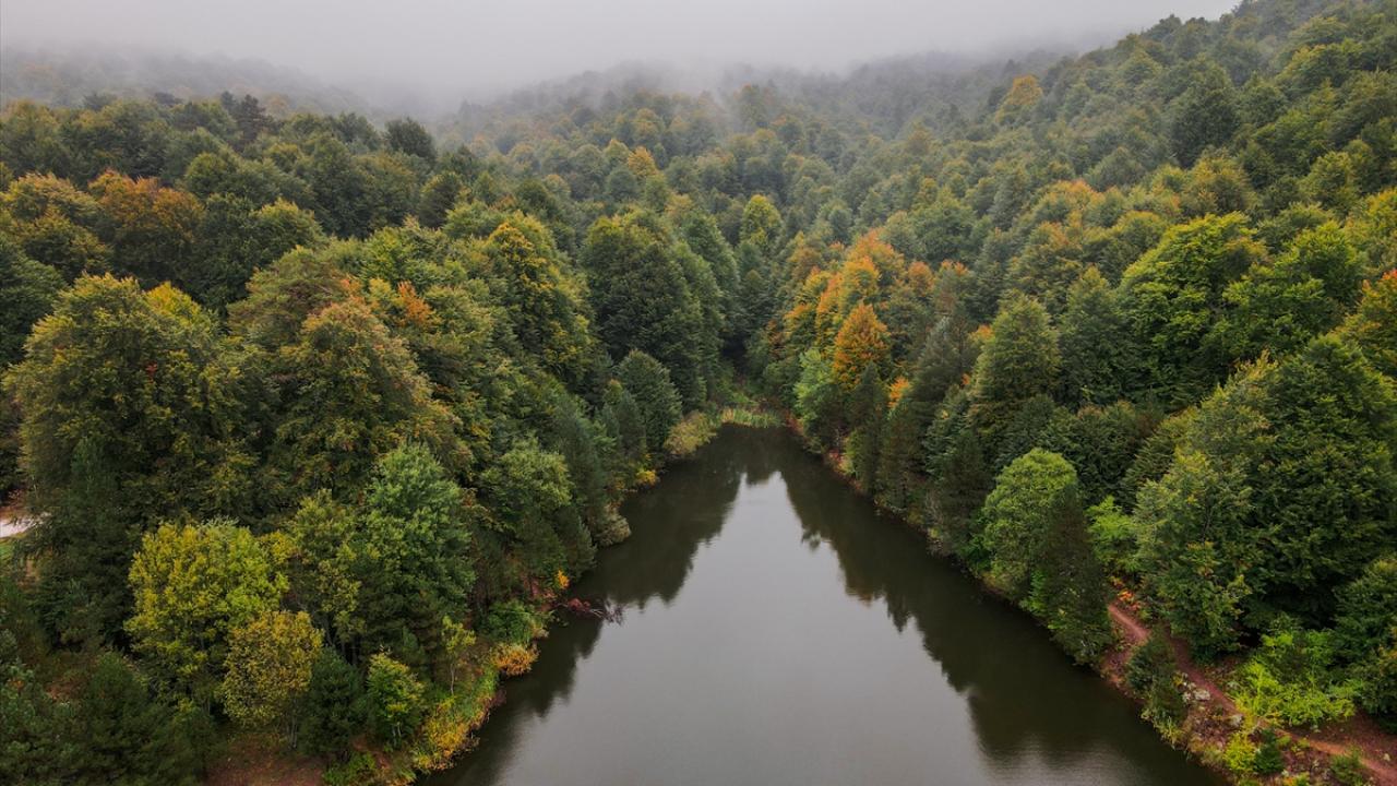Kayın ve meşe ağaçlarının, derelerin bulunduğu Domaniç Dağları`ndaki renk değişimi dronla görüntülendi.