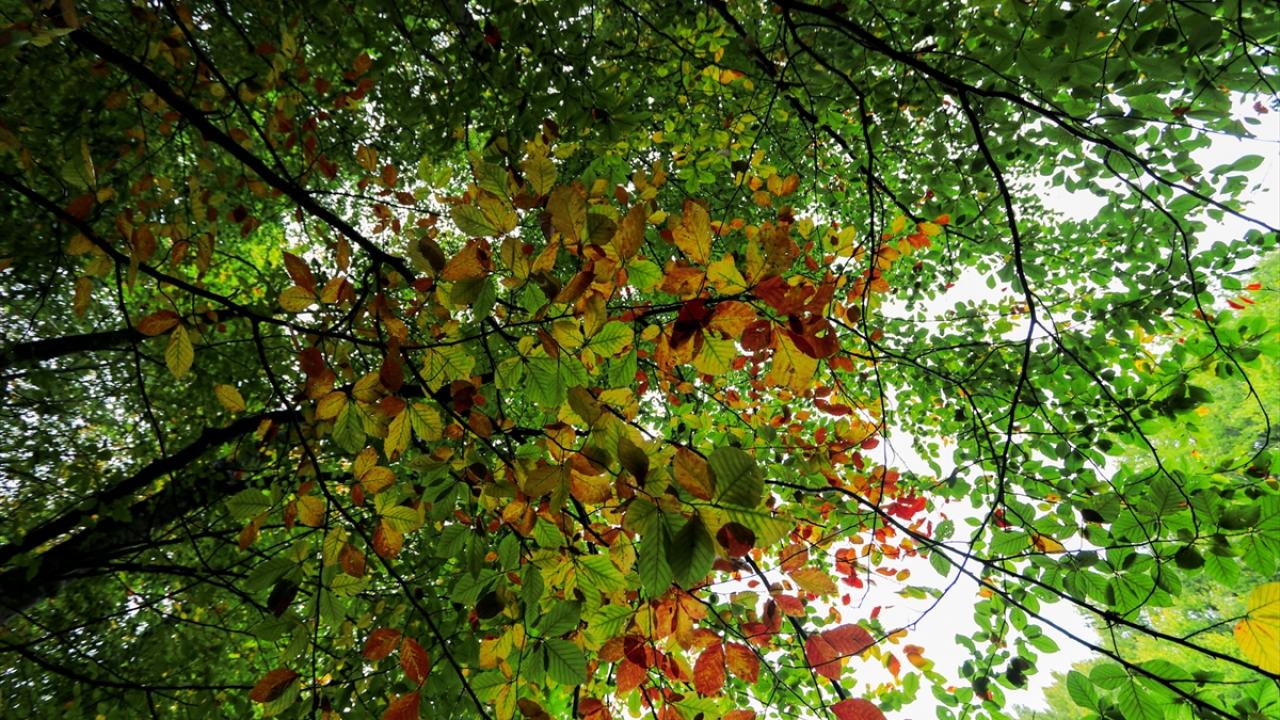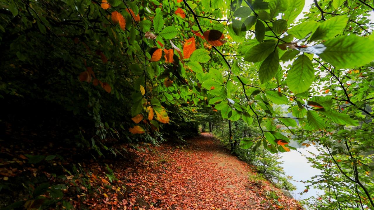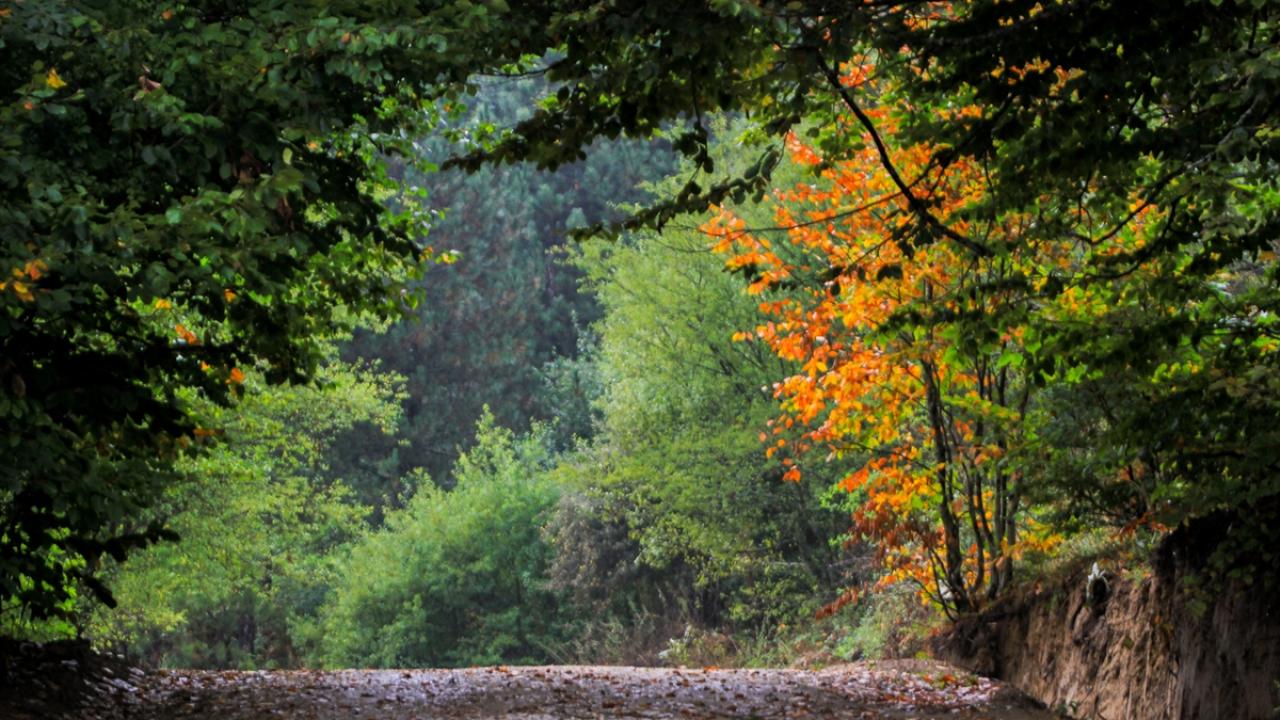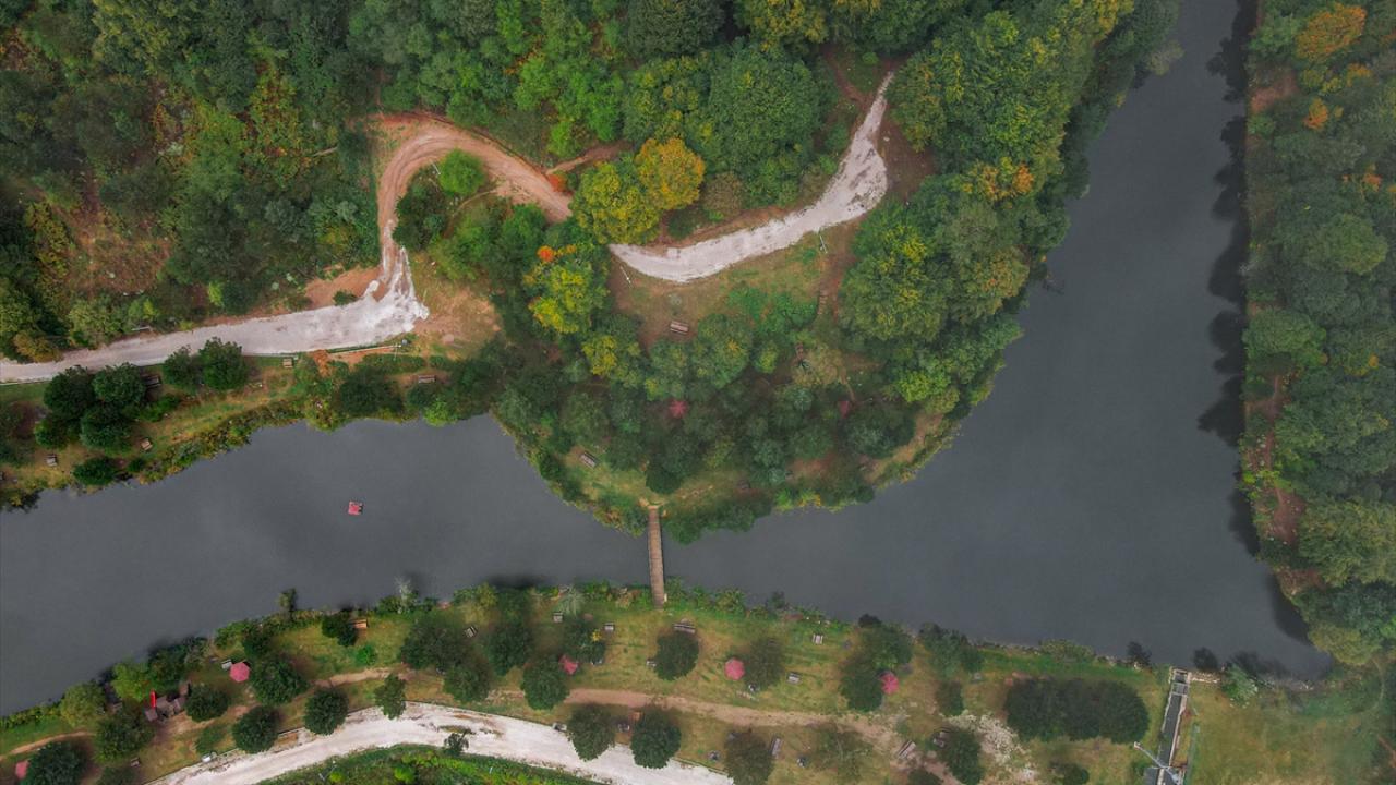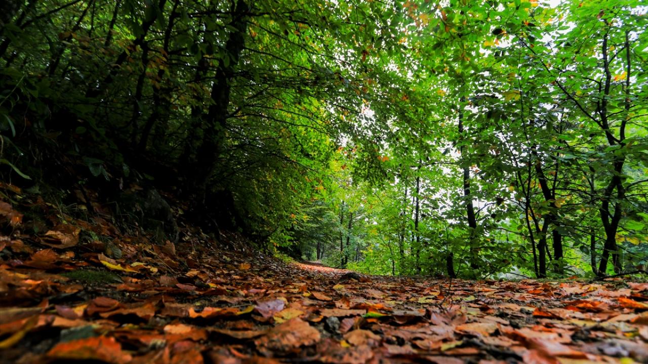 Kayın ve meşe ağaçlarının, derelerin bulunduğu Domaniç Dağları`ndaki renk değişimi dronla görüntülendi.