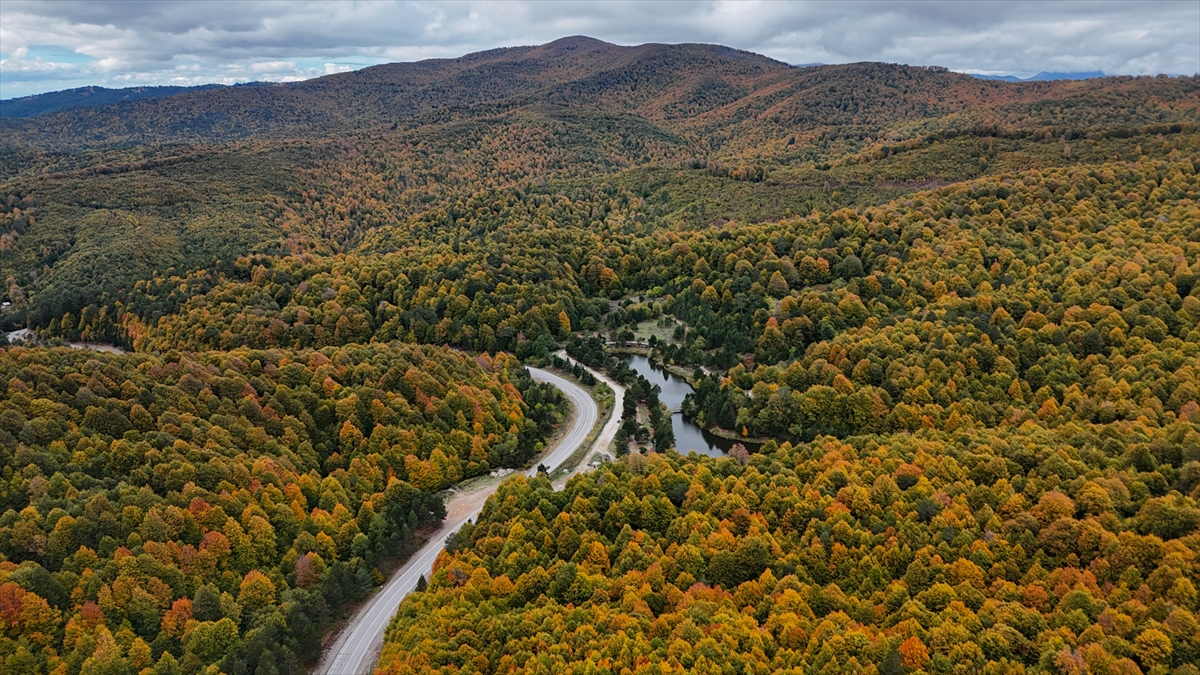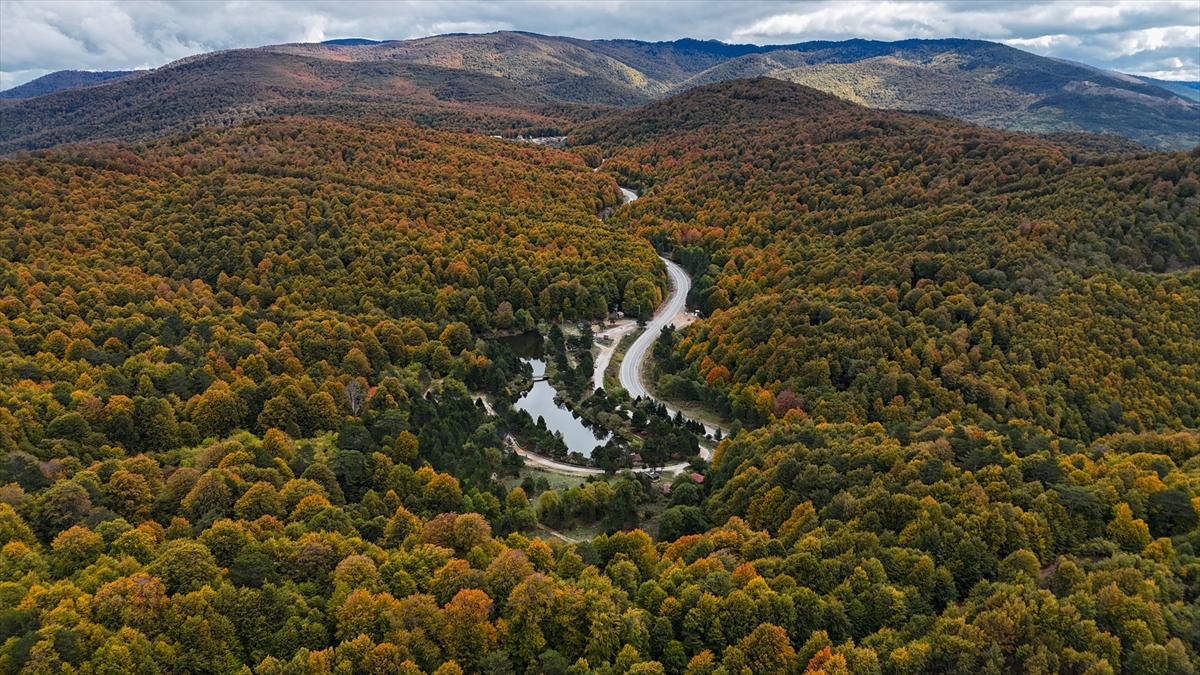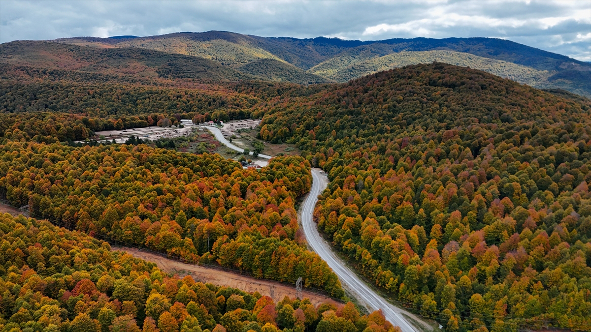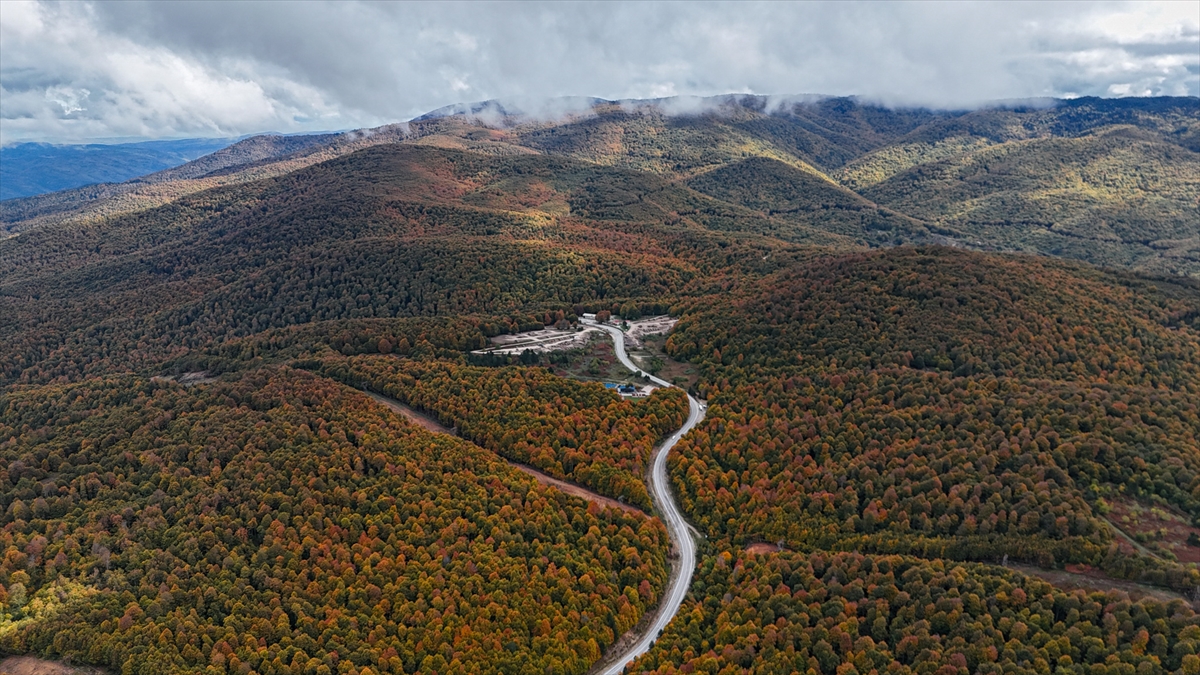 Öte yandan, kayın, meşe ve çam ağaçlarının bir arada bulunduğu Domaniç Dağları’ndaki renk değişimi dron ile görüntülendi.