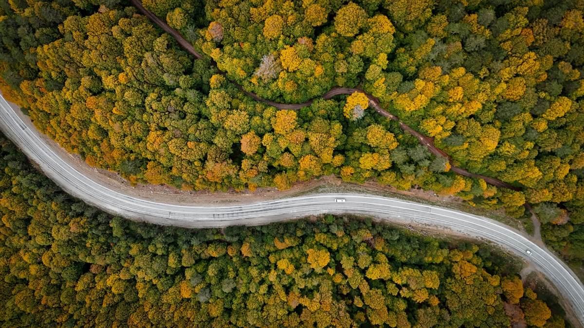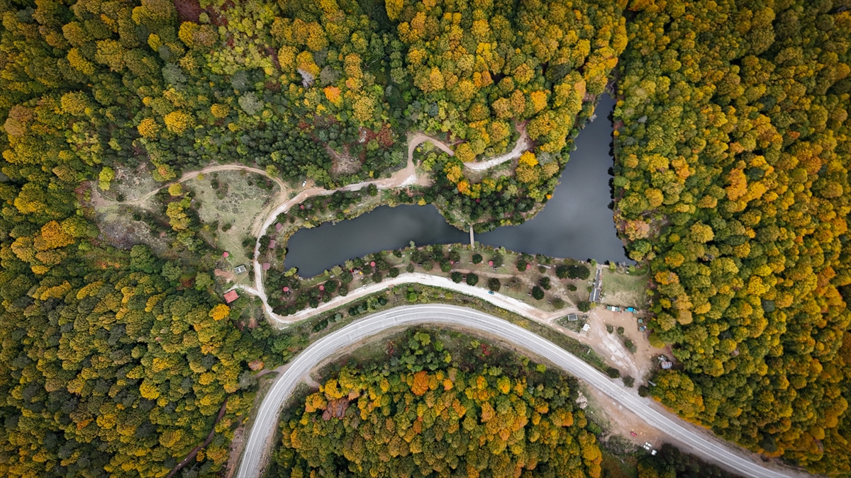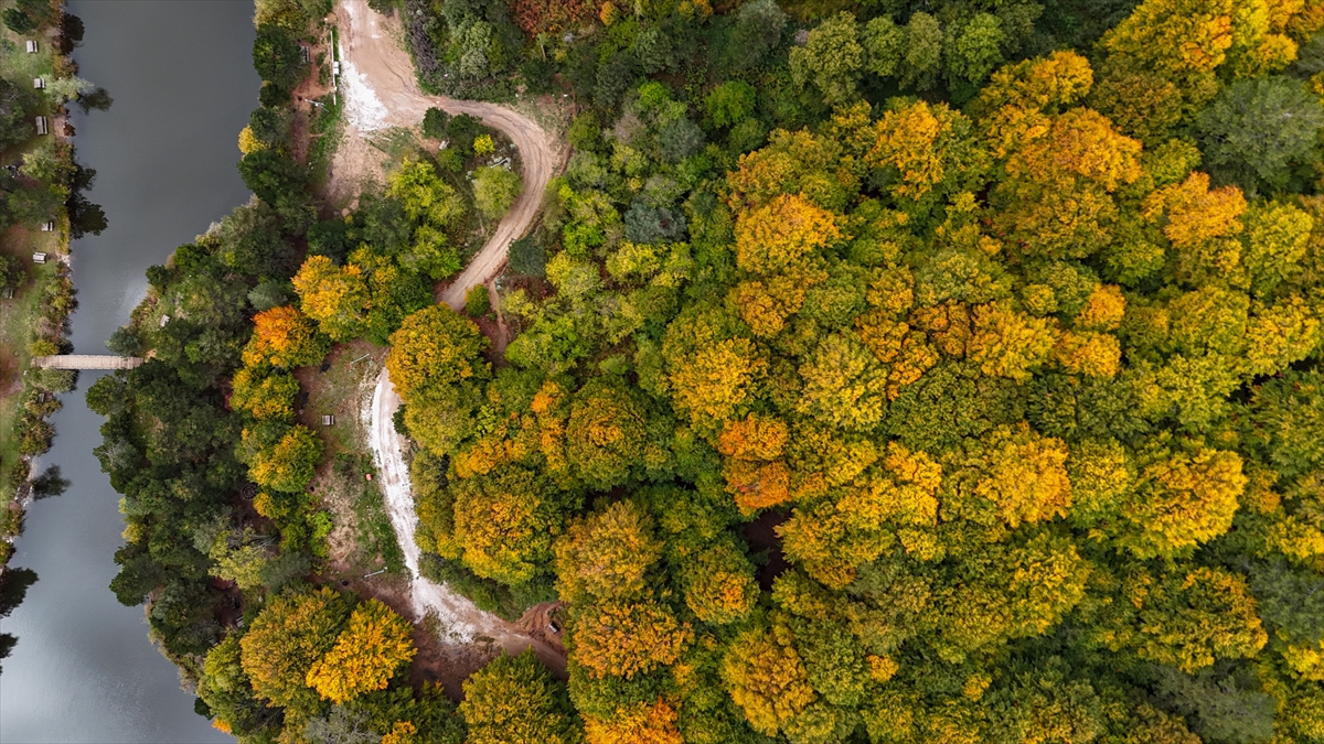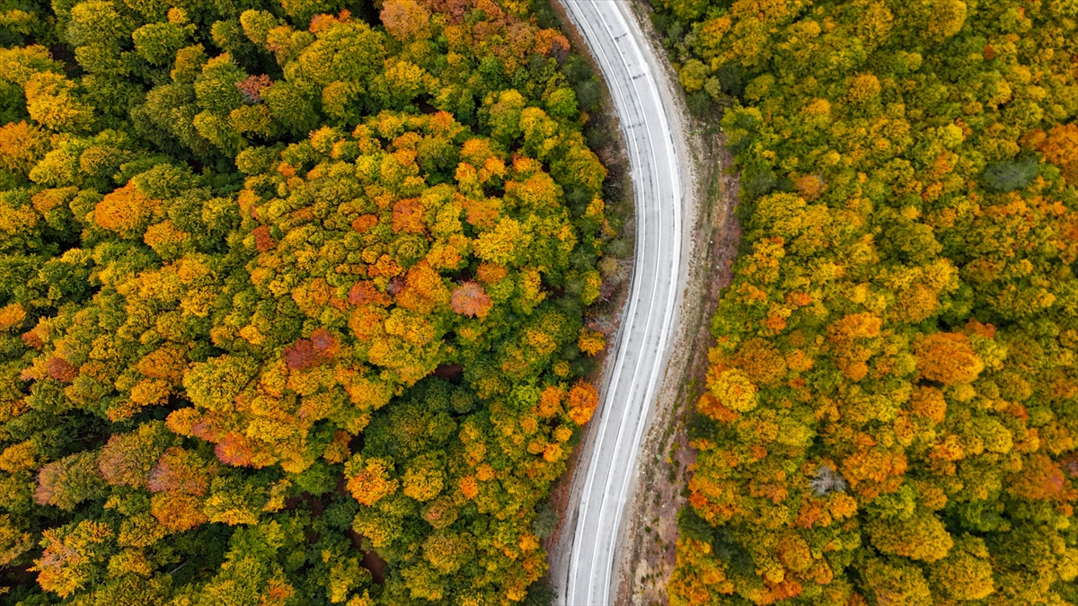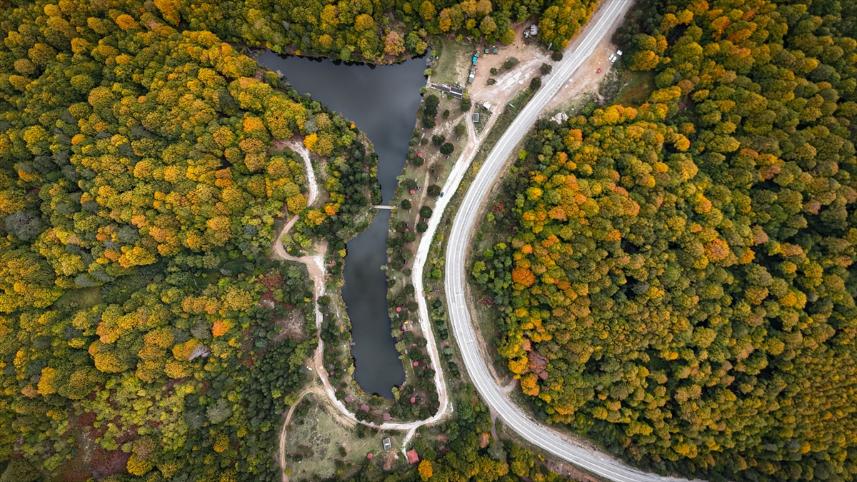 Öte yandan, kayın, meşe ve çam ağaçlarının bir arada bulunduğu Domaniç Dağları’ndaki renk değişimi dron ile görüntülendi.
