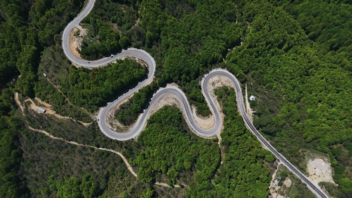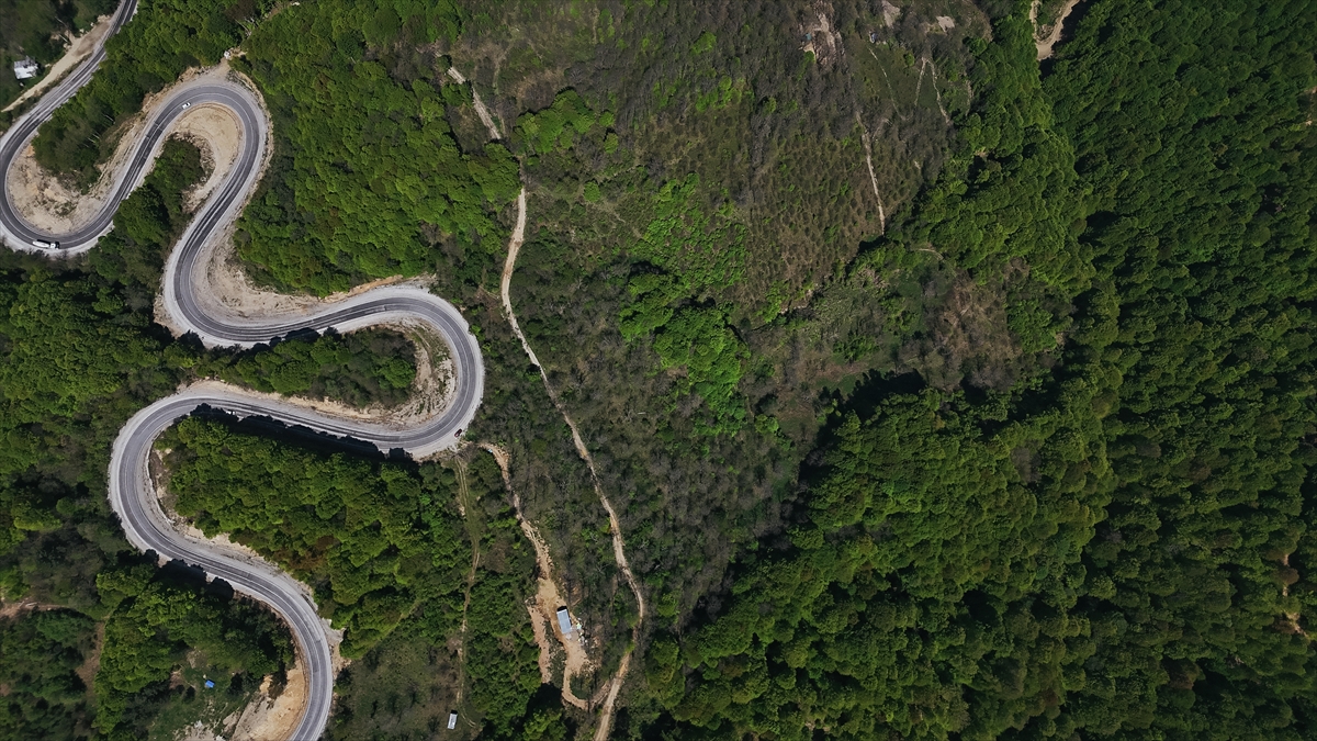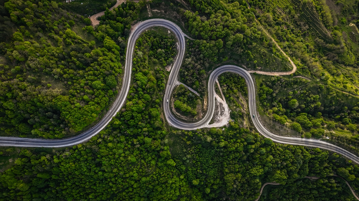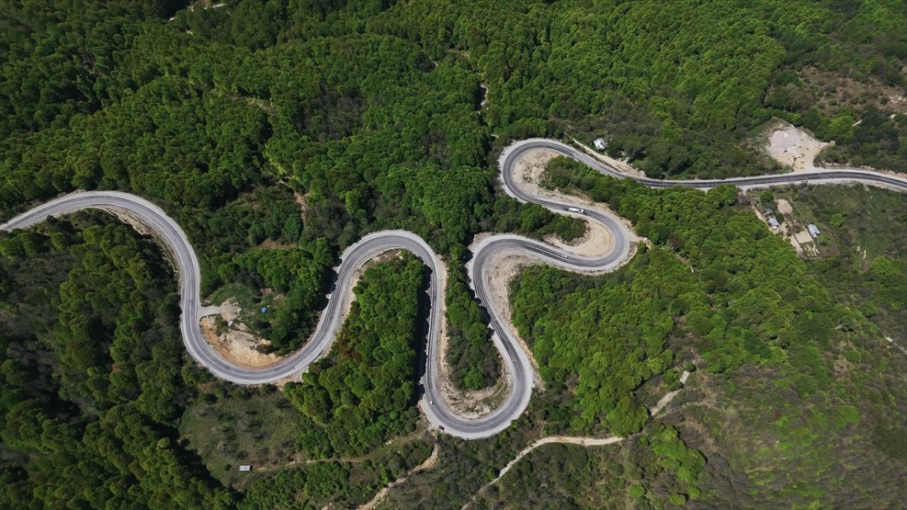 Kütahya ile Bursa'nın doğal sınırını oluşturan Domaniç Dağları'nda ilkbaharla birlikte yeşilin tonlarıyla bütünleşen kıvrımlı yollar dronla görüntülendi.