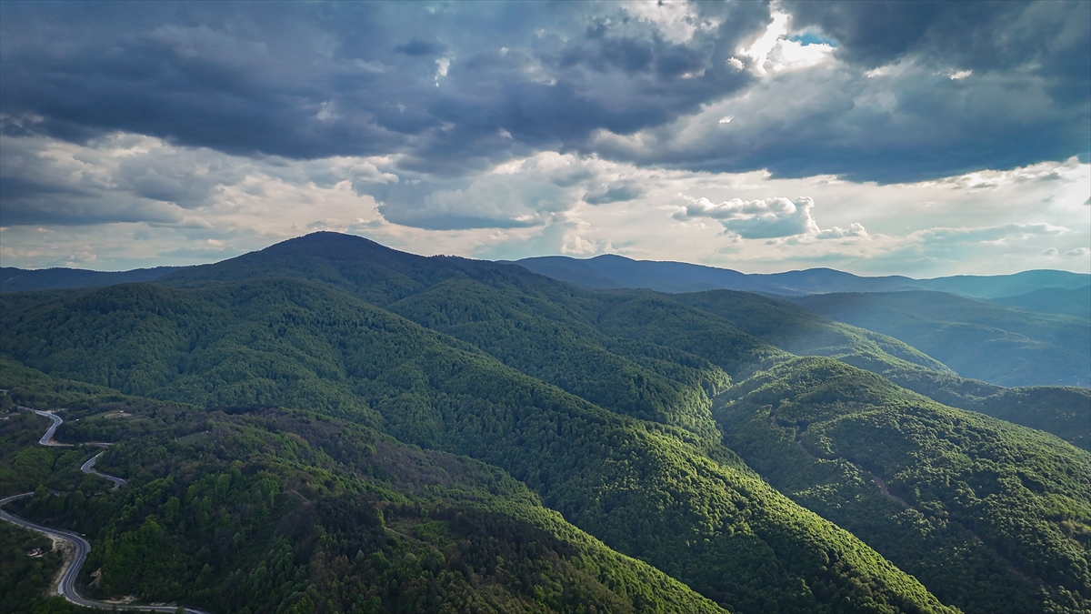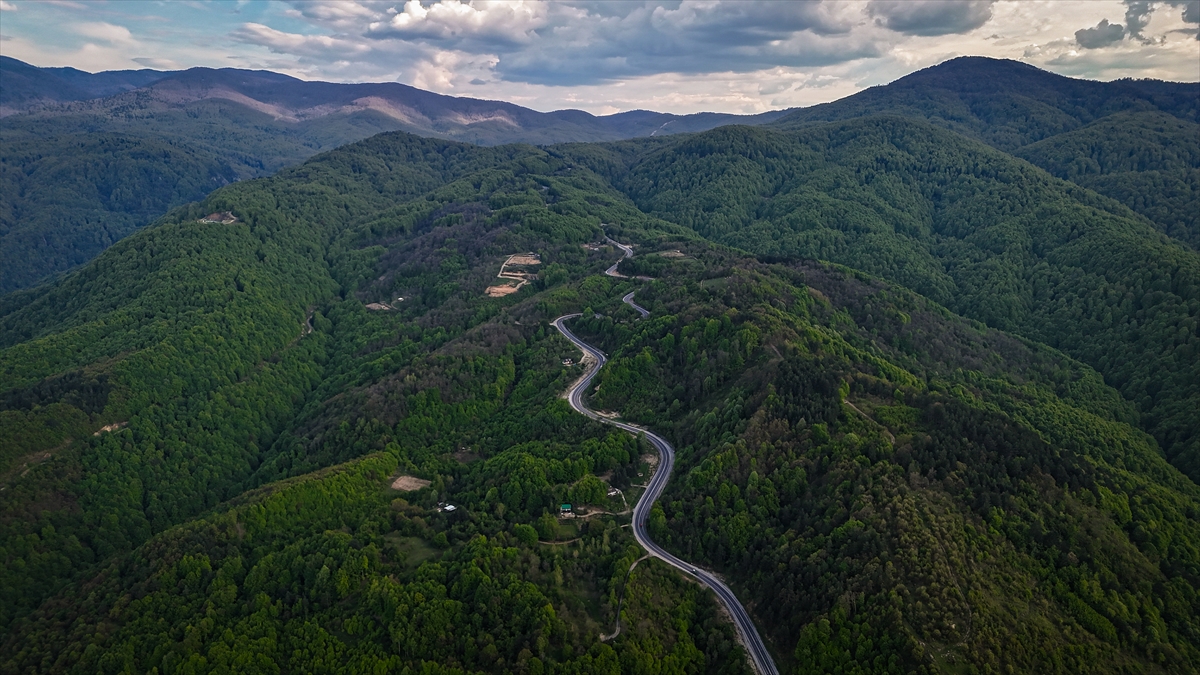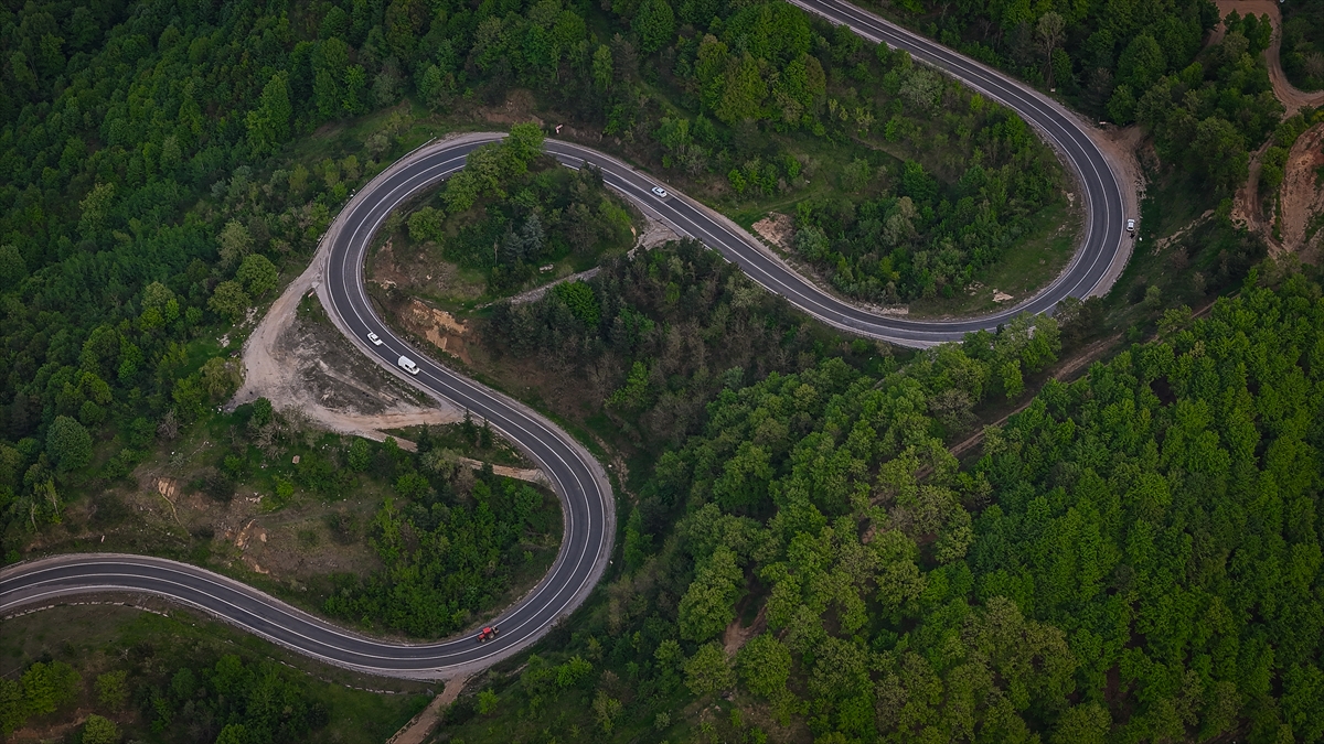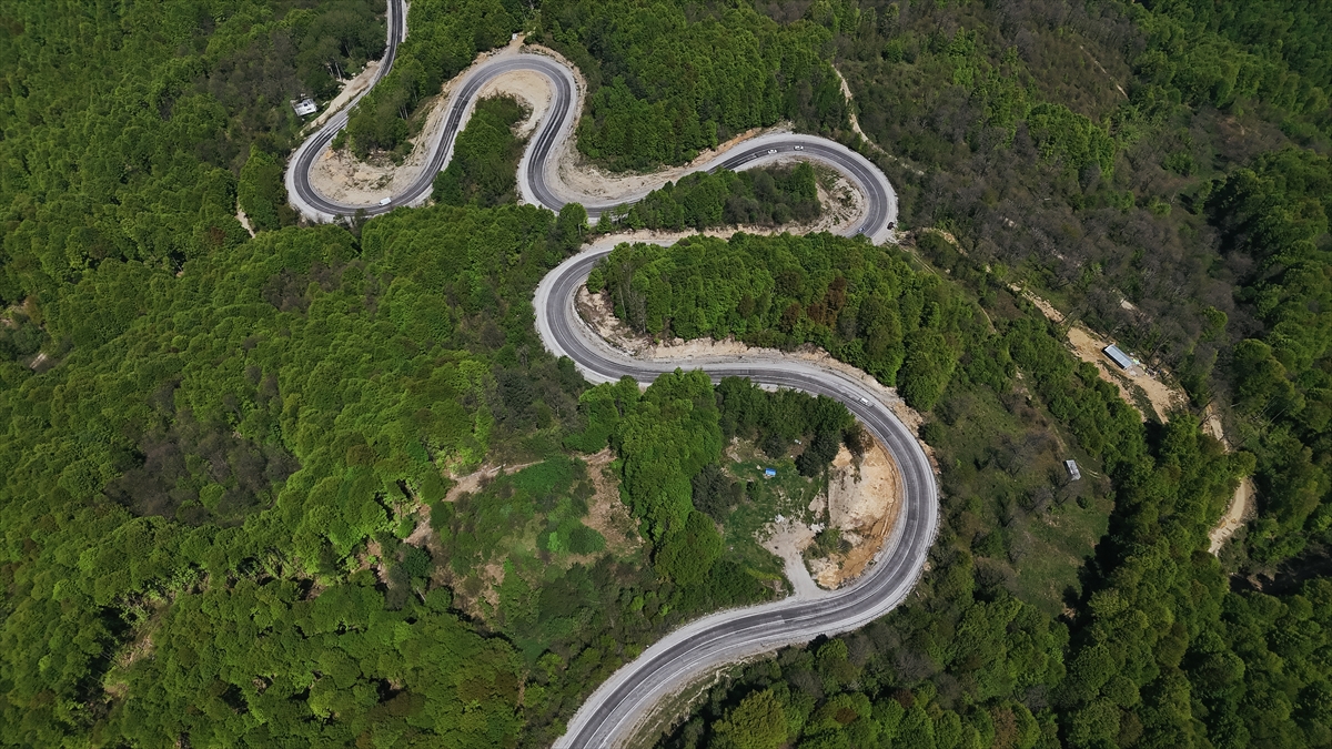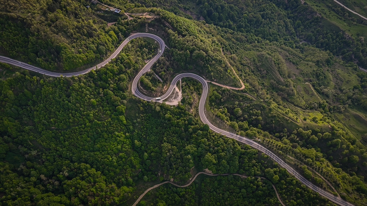 Kütahya ile Bursa'nın doğal sınırını oluşturan Domaniç Dağları'nda ilkbaharla birlikte yeşilin tonlarıyla bütünleşen kıvrımlı yollar dronla görüntülendi.