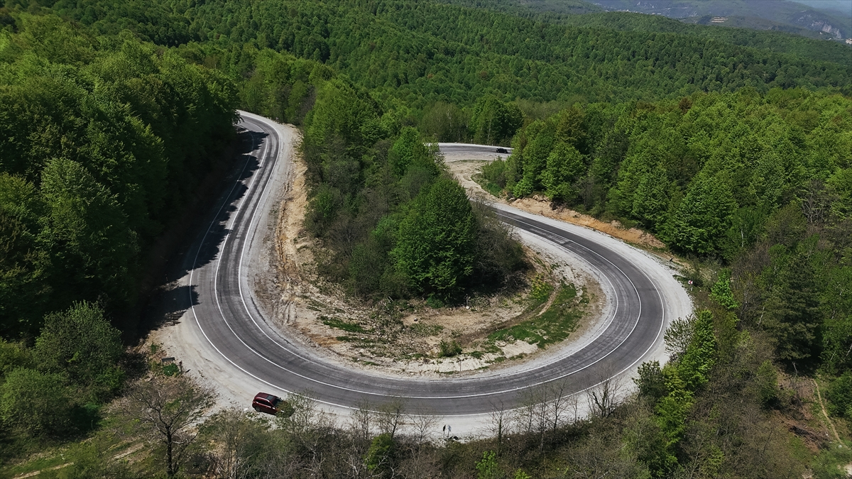 Kütahya`nın Domaniç ilçesinde, 1500 rakımlı Kocayayla Geçidi`ne uzanan kıvrımlı yollar, baharın gelişiyle birlikte yeşilin tonlarına büründü.
