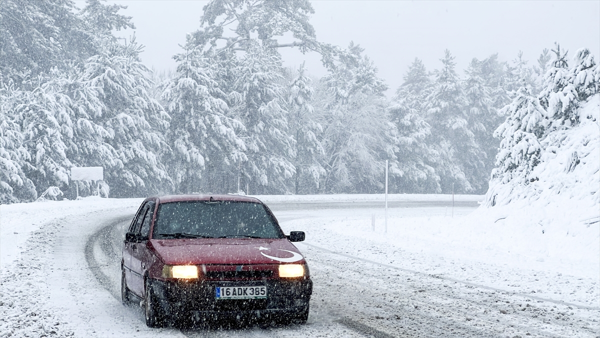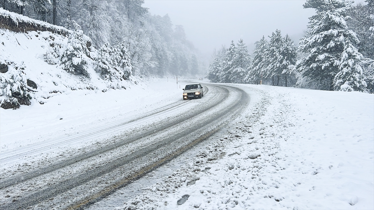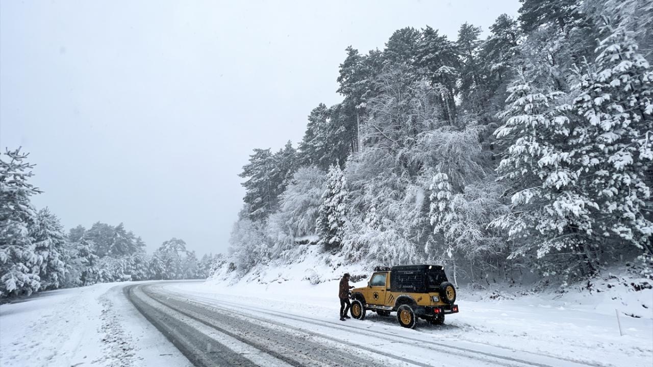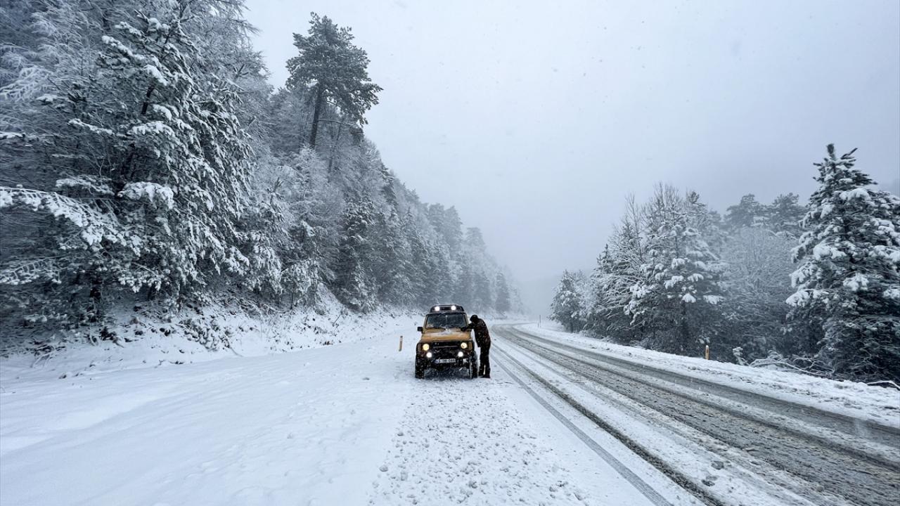 Kütahya'nın Domaniç ile Bursa'nın İnegöl ilçeleri arasındaki Domaniç Dağları'nda kar yağışı başladı.