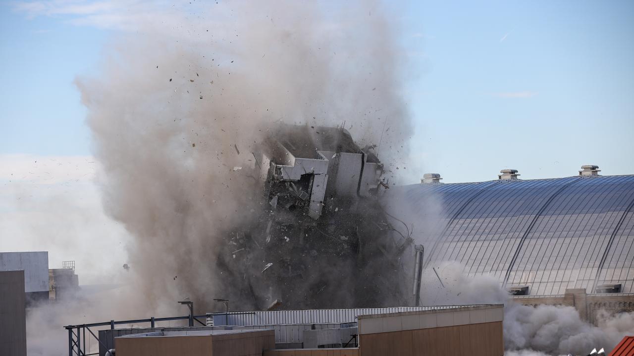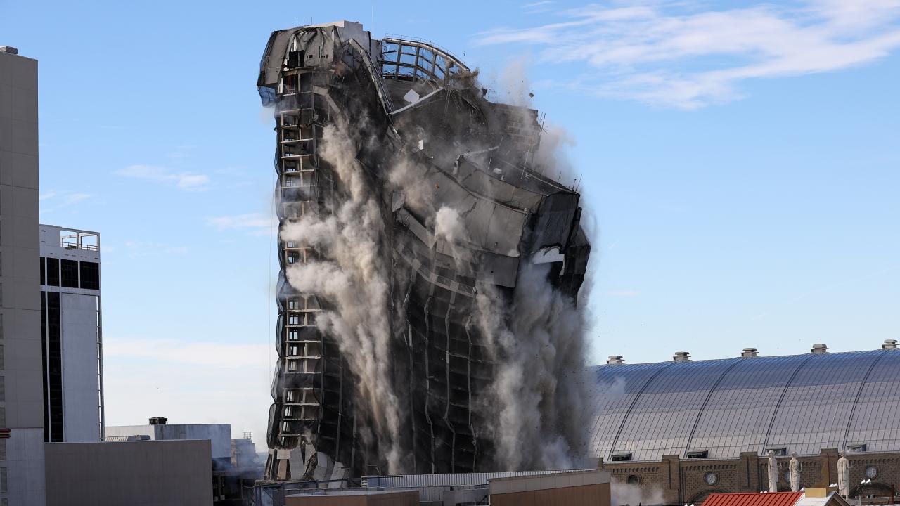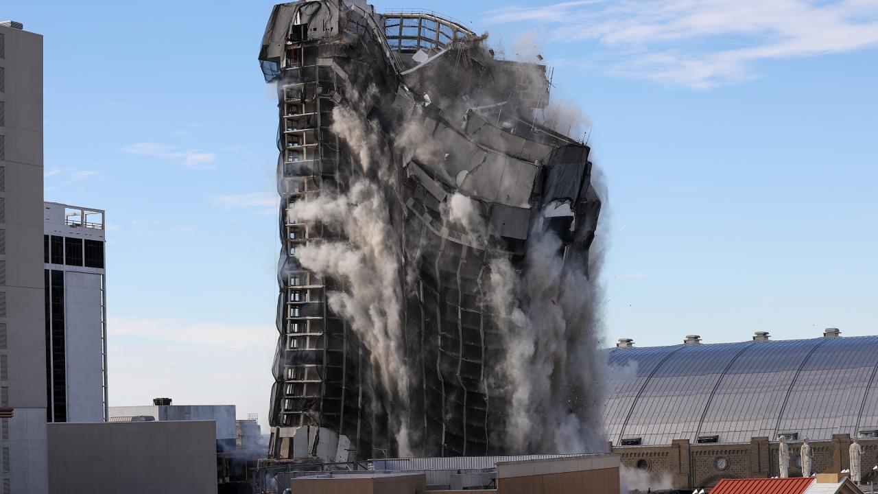 Üç bin dinamit kullanılarak patlatıldı, saniyeler içinde yerle bir oldu. 1984 yılında hizmete giren otel, 2014 yılında finansal krize girdi.