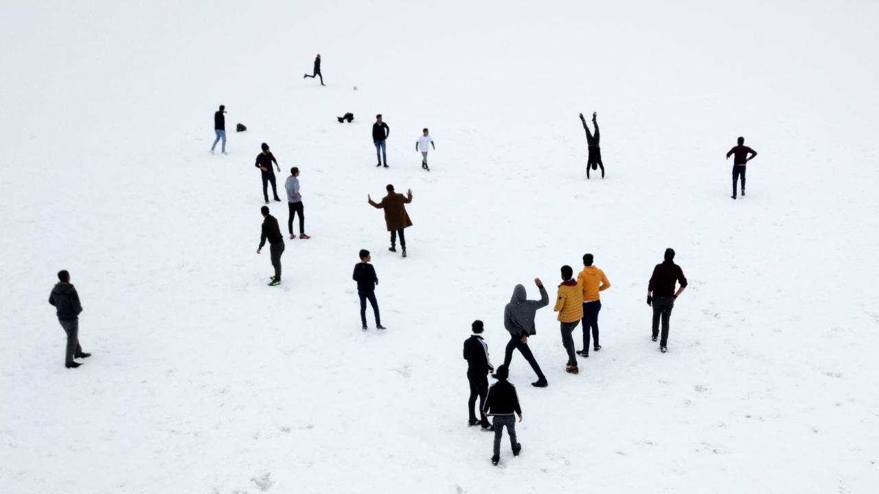 Donan göl üzerinde futbol oynayan gençlerden Ünal Emen, kış mevsimi boyunca donan gölde futbol oynayarak boş zamanlarını değerlendirdiklerini söyledi.