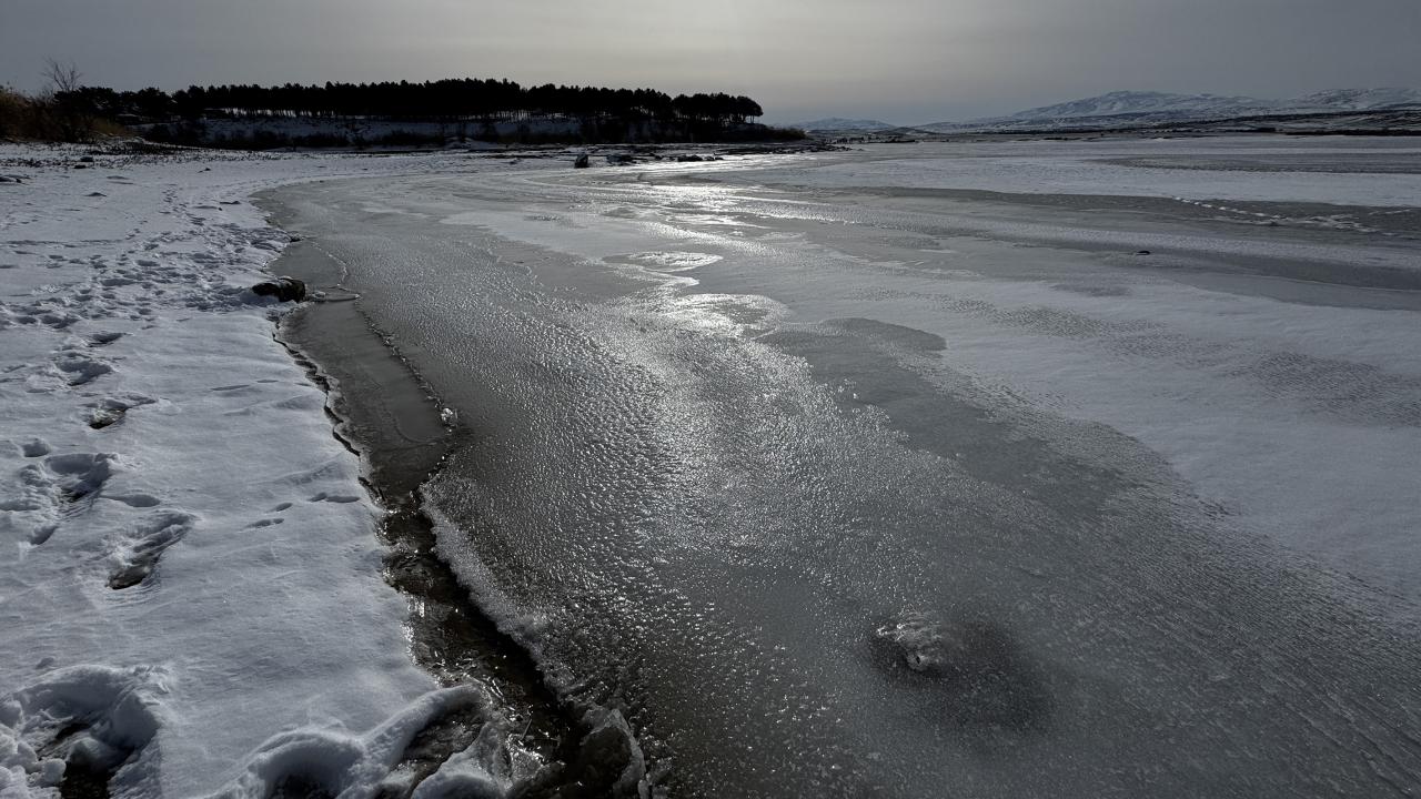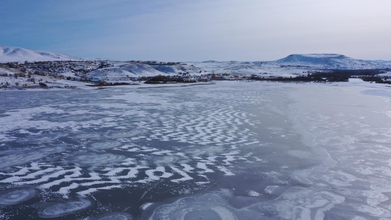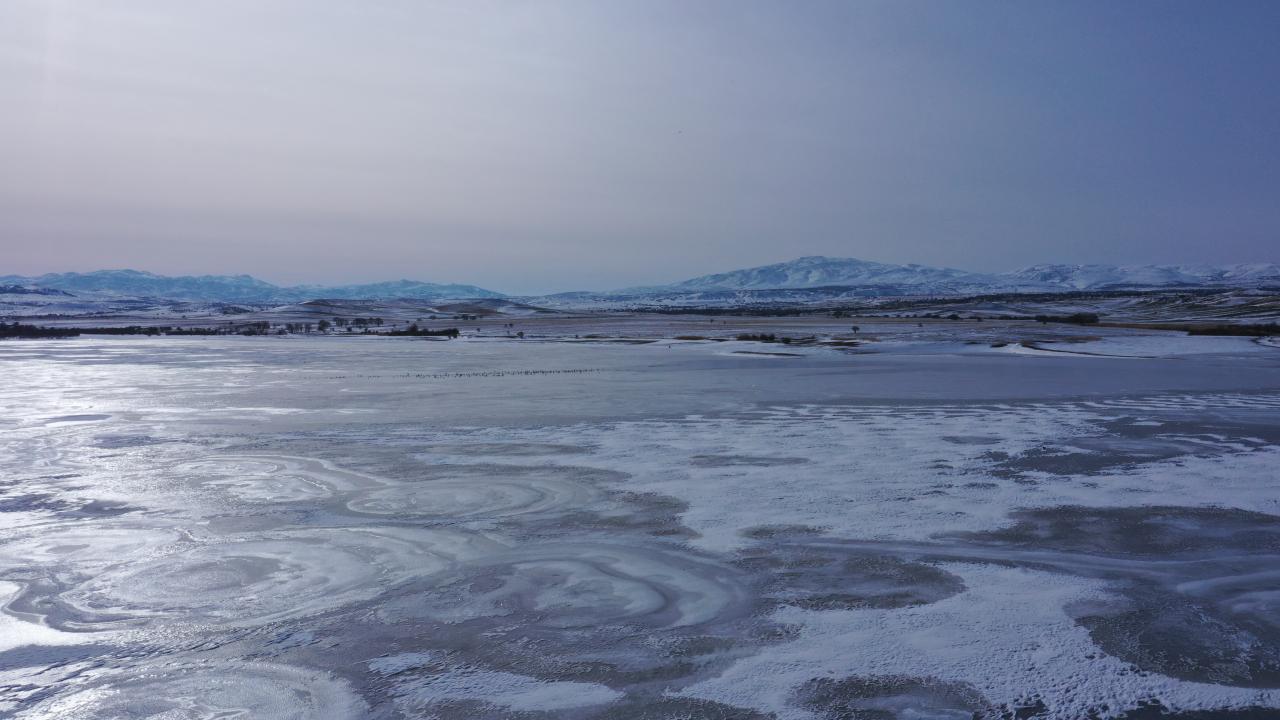 Baraj gölünün yüzeyinin donmasıyla bazı kuş türlerinin buz kütlesinin üzerinde konakladığı görüldü.
