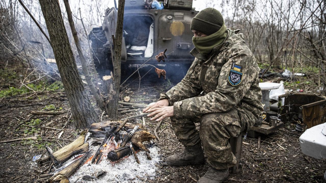 Andrey, Bahmut`a yakın patlama seslerinin duyulduğu bir alanda, cephedeki arkadaşlarıyla soğuk havada yaktıkları ateşle ısınmaya çalıştıklarını anlattı.