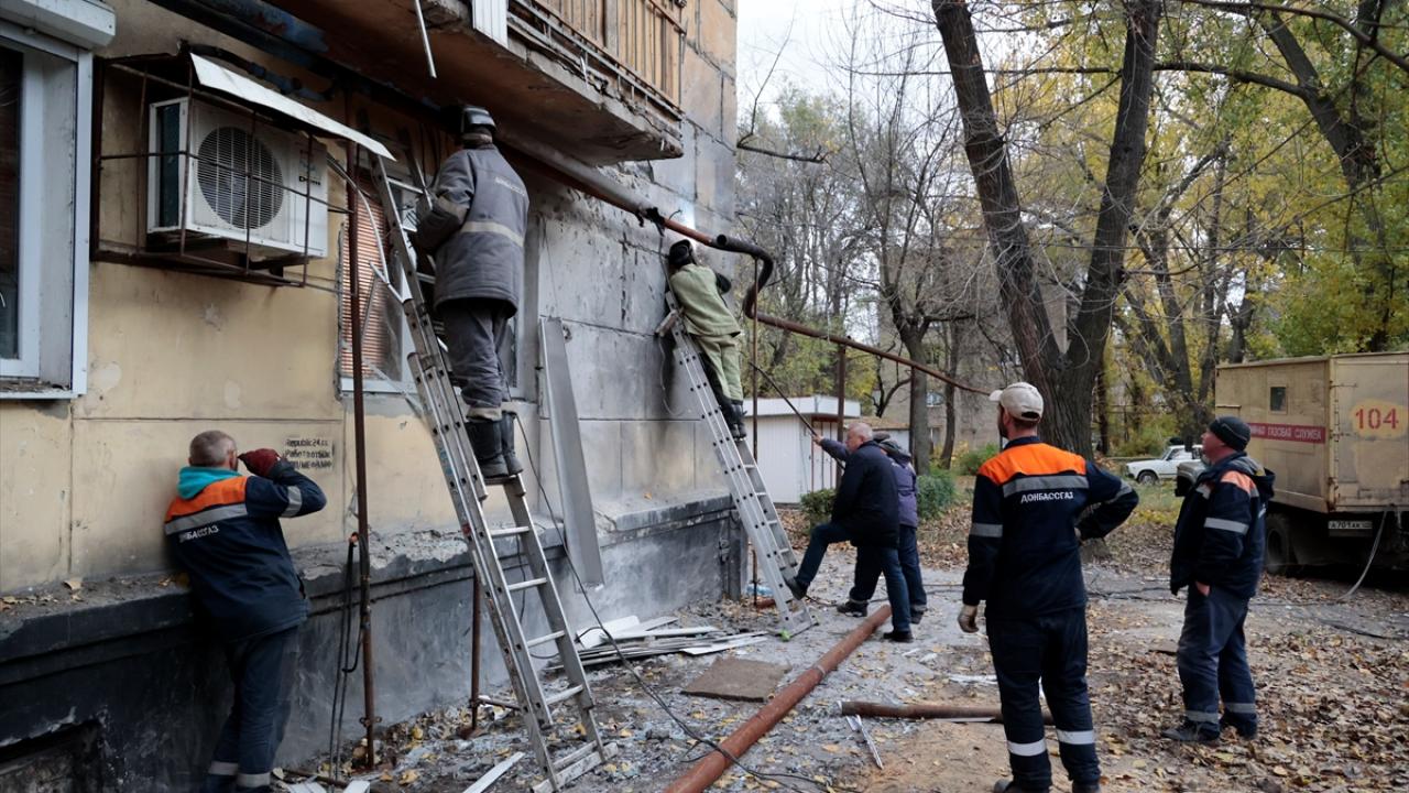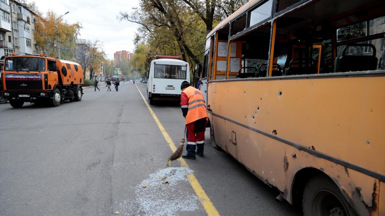 Ukrayna ile Rusya arasında 24 Şubat'ta başlayan ve 8 aydan fazladır devam eden savaşta özellikle son dönemlerde ağır çatışmaların yaşandığı Ukrayna'nın Donetsk Oblastı'ndaki bombardımanın ardından bazı araçlar ve binalar zarar gördü.