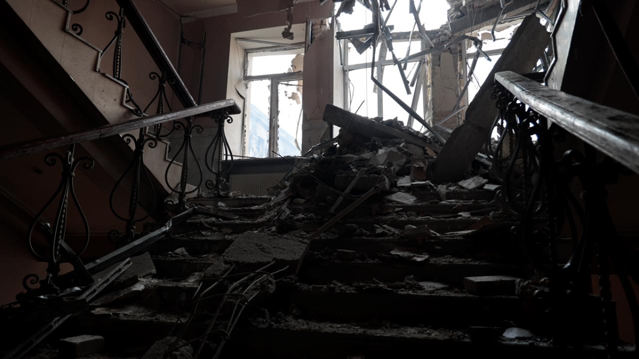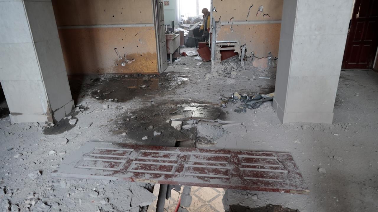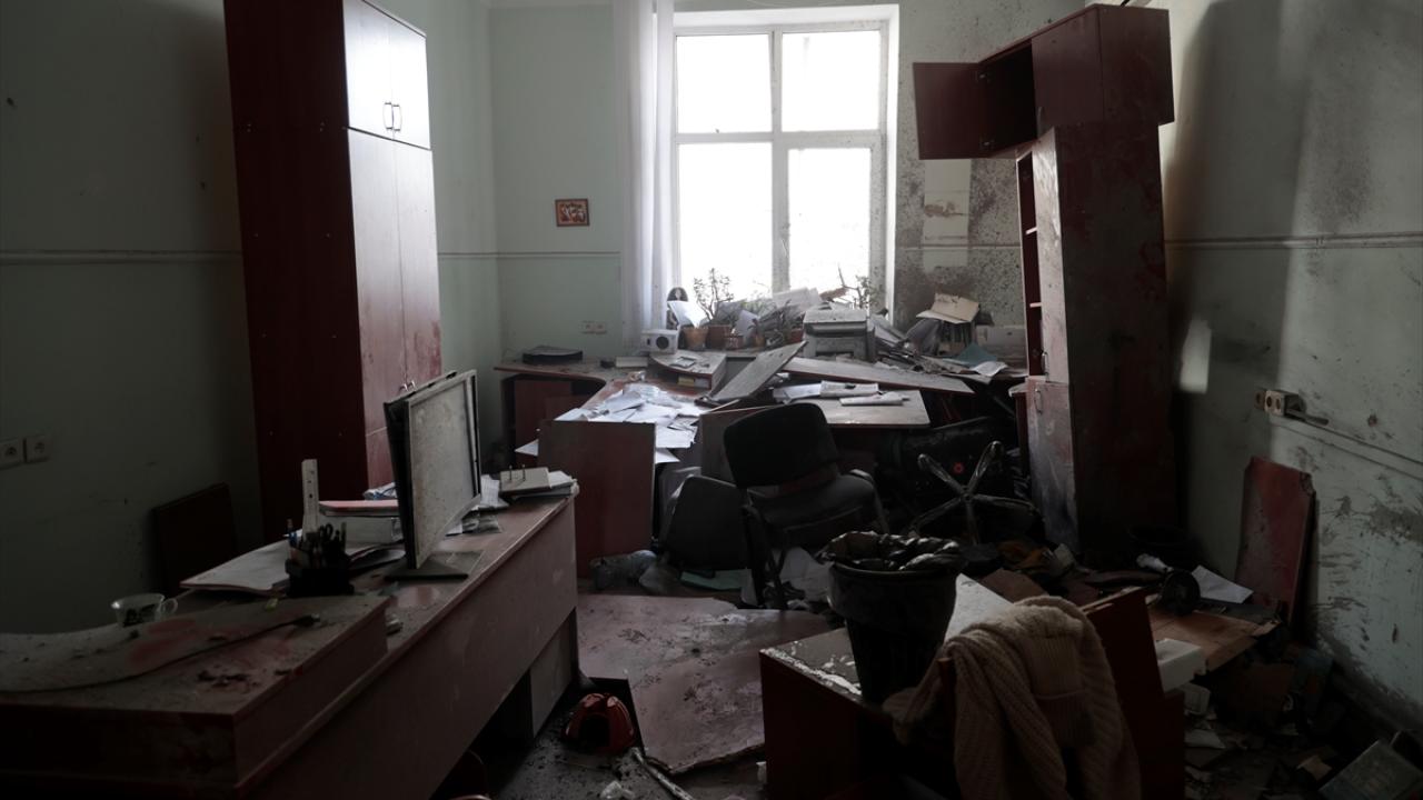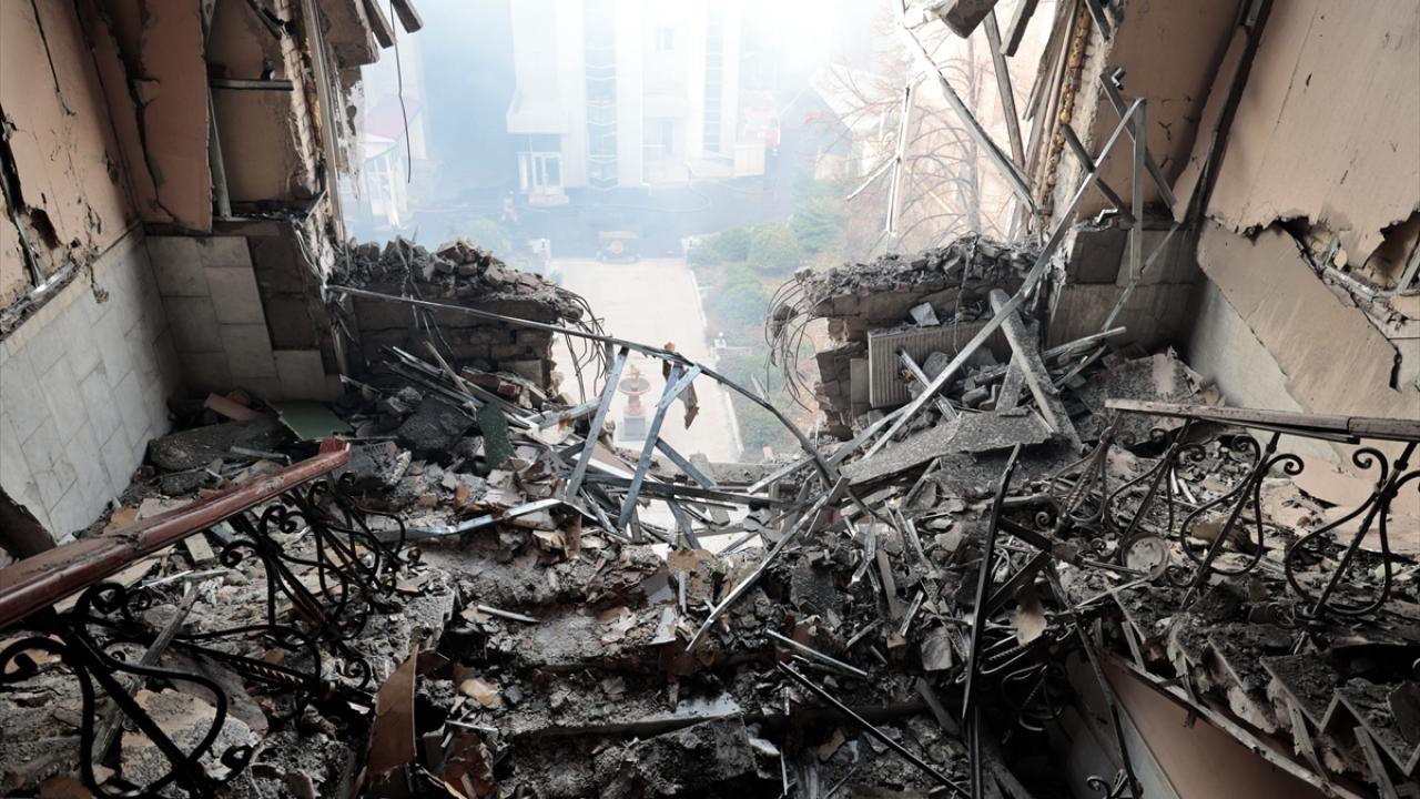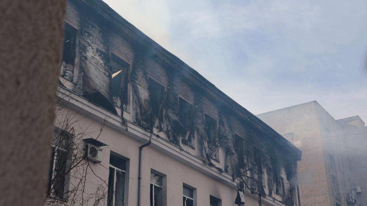 Ukrayna'nın Donetsk kentindeki demir yolları yönetim binasında, roket saldırısının ardından maddi hasar meydana geldi.