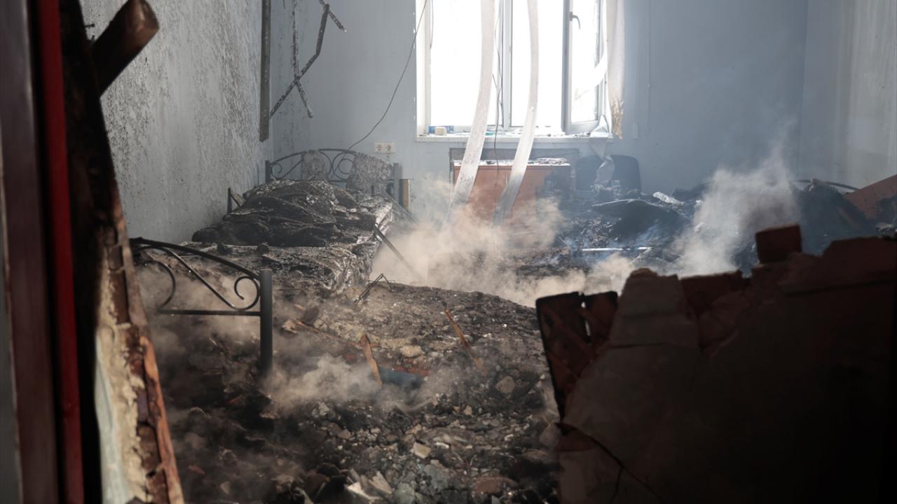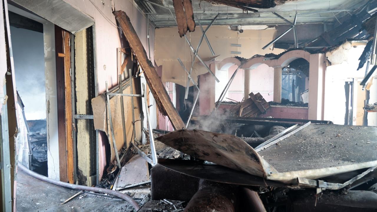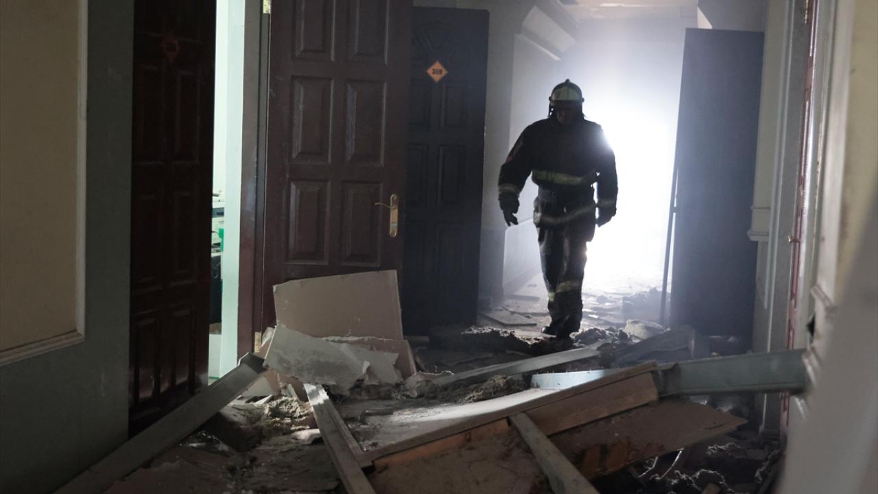 Hasarlı binada yangın söndürme ve soğutma çalışmaları devam ediyor.