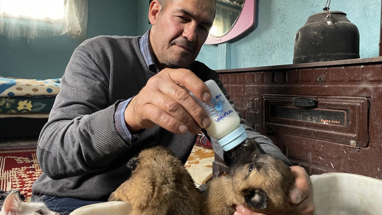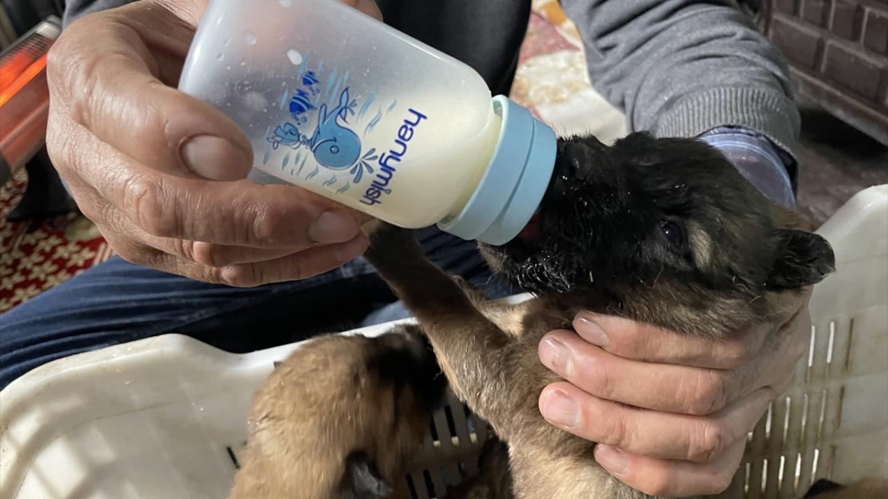 Gündüz, köpekleri bir kasanın içinde sobanın kenarına koyarak ısınmalarını sağladı. Köpeklere biberonla süt ve mama veren Gündüz, yavruları ölümden kurtardı.