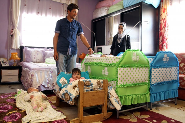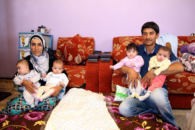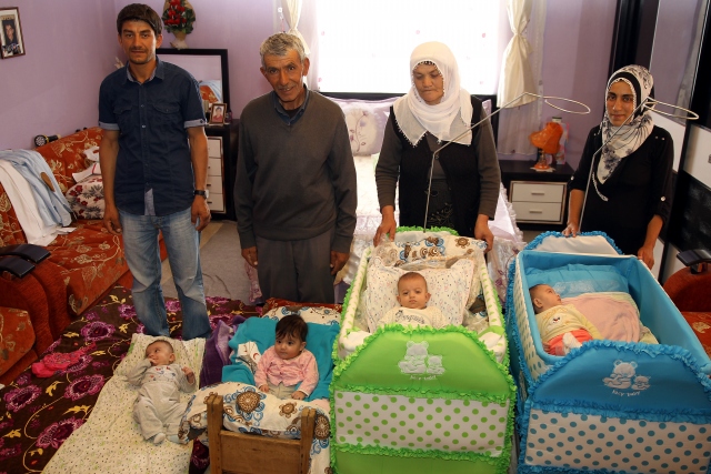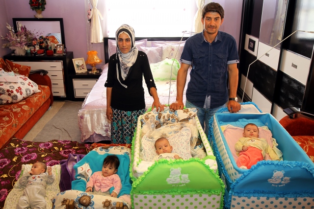 Van'ın Saray ilçesinde 4 yıl önce evlenen ve uzun süre bebek sahibi olamayan Yücel ve Sinem Nam çifti, 5 ay önce dünyaya gelen dördüzlerinin sevincini yaşıyor.