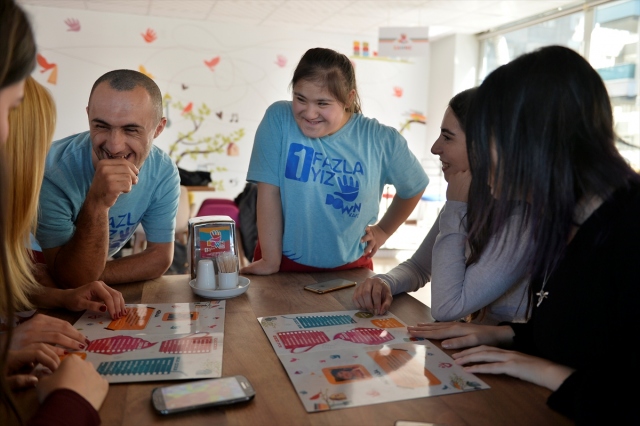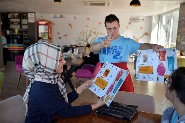 İçişleri Bakanlığınca görevlendirme yapılan Mardin Büyükşehir Belediyesinin açtığı kafede istihdam edilen down sendromlu garsonlar, bir yandan sosyalleşme imkanı bulurken diğer taraftan müşterilere güzel vakit geçirebilecekleri sıcak ortam sunuluyor. Büyük heyecanla müşterilerin masalarına koşturan çalışanlar, bir yandan siparişleri yetiştiriyor diğer yandan da şarkı söyleyip konuklarıyla sohbet ediyor.