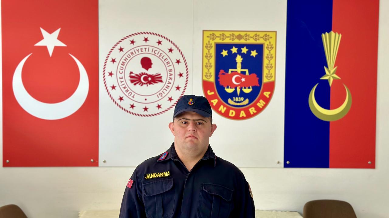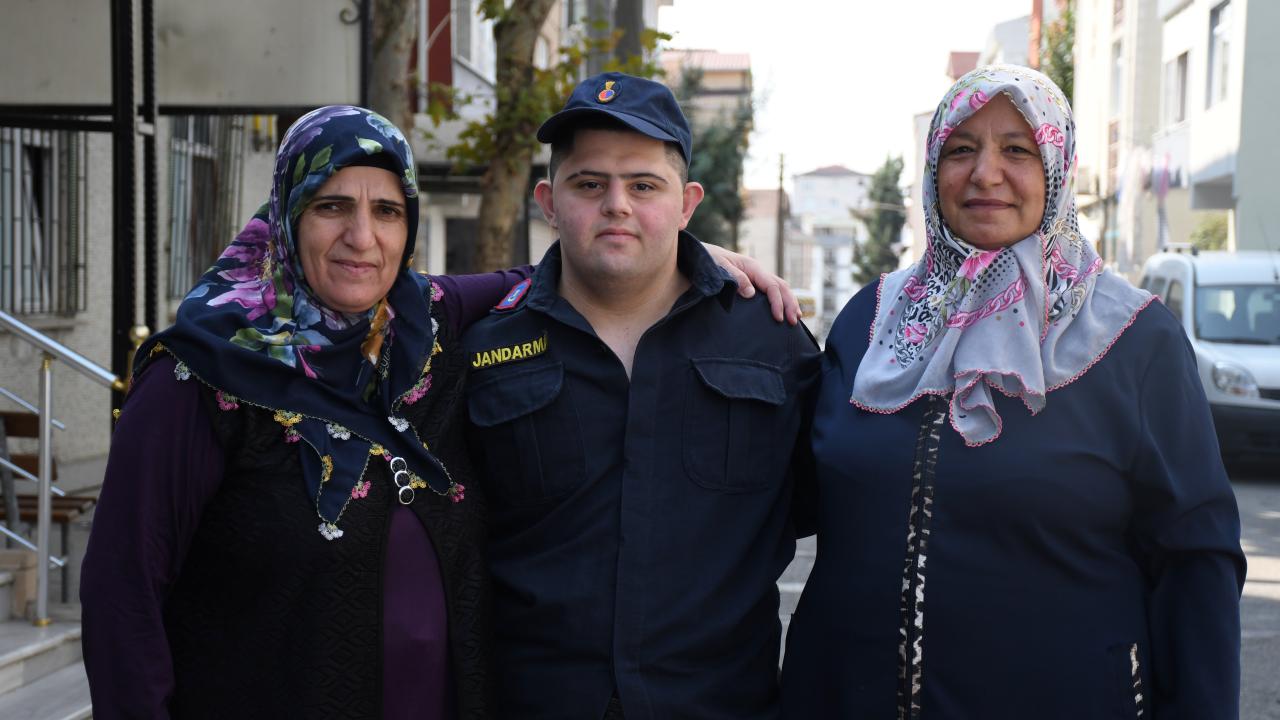 Kocaeli'nin Gebze ilçesinde Down sendromlu Burak Karaçam'ı, İlçe Jandarma Komutanlığı bir günlük temsili askerlik yaptırarak hayalini kurduğu üniformaya kavuşturdu.