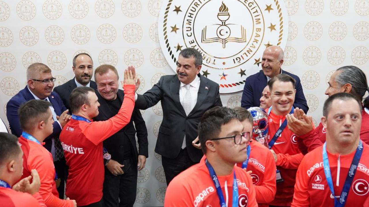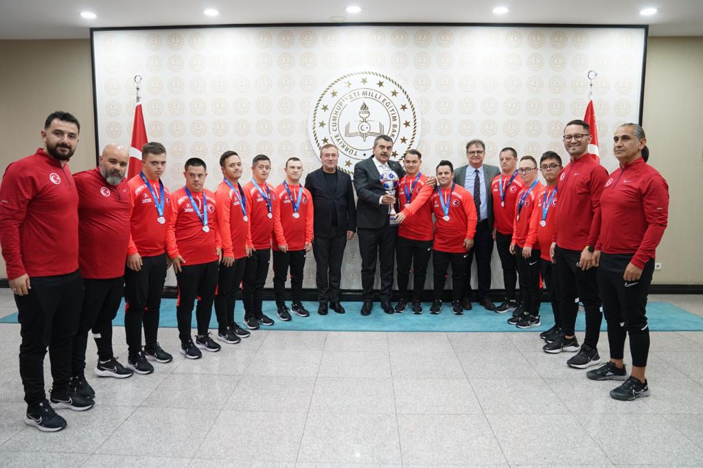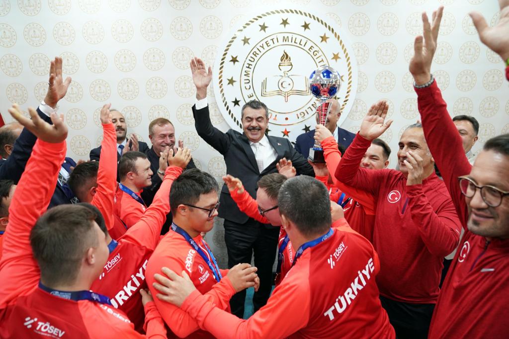 Milli Eğitim Bakanı Yusuf Tekin, İtalya'nın Padova kentinde düzenlenen Down Sendromlular Avrupa Şampiyonası finalinde Portekiz'i 2-1 yenerek altın madalya kazanan Futsal Milli Takımını ağırladı.