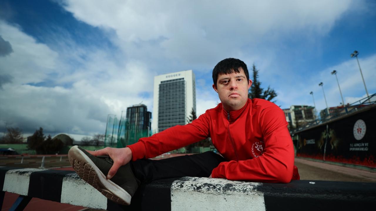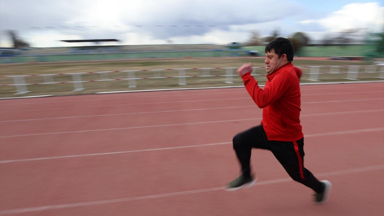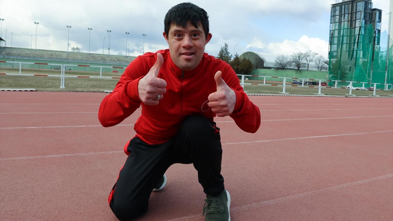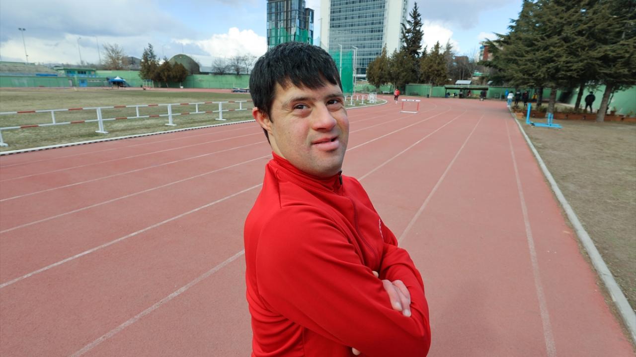 Ankara 19 Mayıs Spor Kompleksi`ndeki atletizm pistinde çalışmalarını sürdüren down sendromlu milli atlet Ahmet Eymen Oymak, dünya şampiyonu olmak istediğini anlatarak, "Annem, babam ve kardeşim için koşuyorum. Isınma hareketlerini de antrenörüm için yapıyorum " dedi.