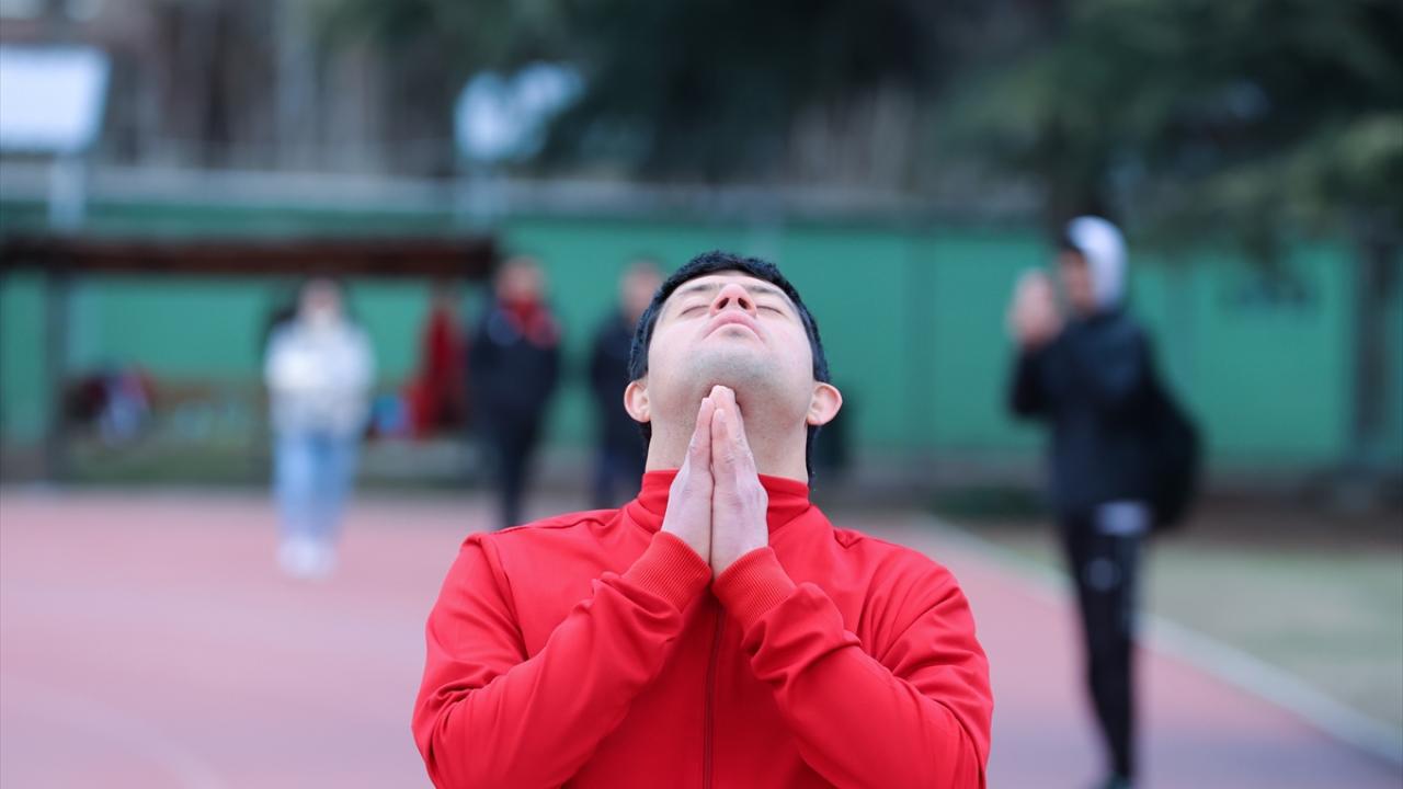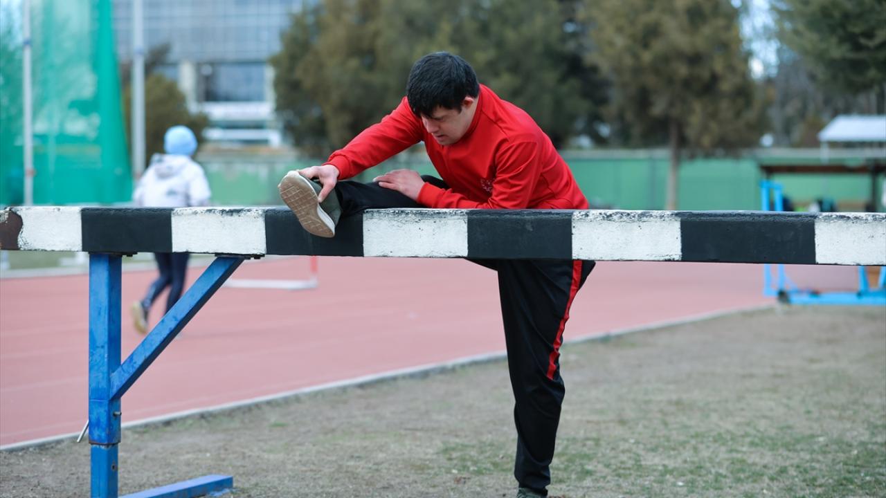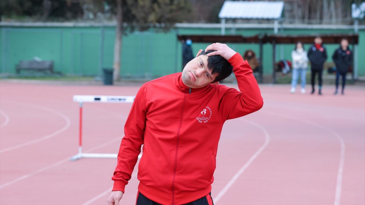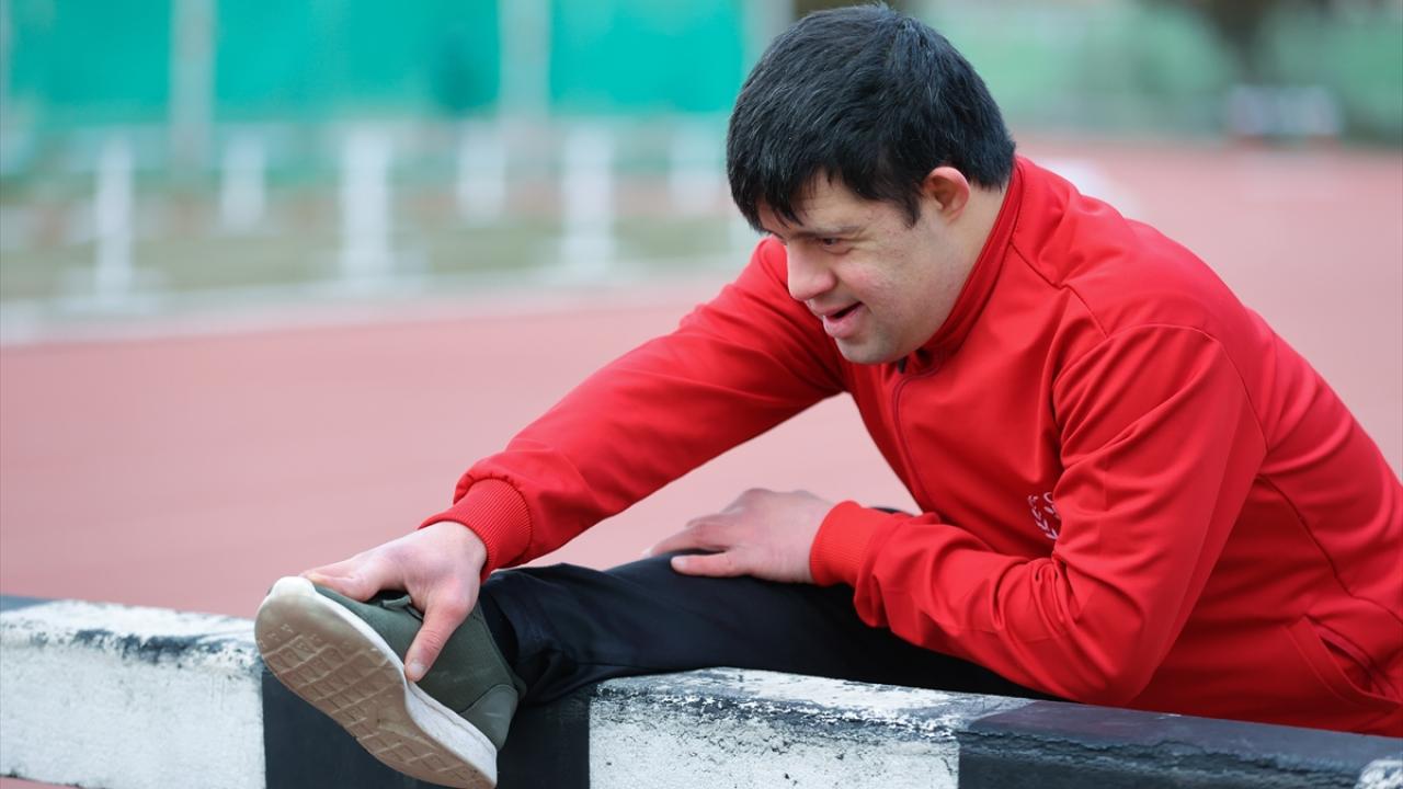 Ankara 19 Mayıs Spor Kompleksi`ndeki atletizm pistinde çalışmalarını sürdüren down sendromlu milli atlet Ahmet Eymen Oymak, dünya şampiyonu olmak istediğini anlatarak, "Annem, babam ve kardeşim için koşuyorum. Isınma hareketlerini de antrenörüm için yapıyorum " dedi.