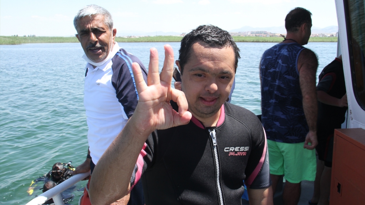 Down sendromlu milli sporcular, aldıkları dalgıçlık eğitiminin ardından eğitmenleri ile Beyşehir Gölü'ne dalış yaptı.