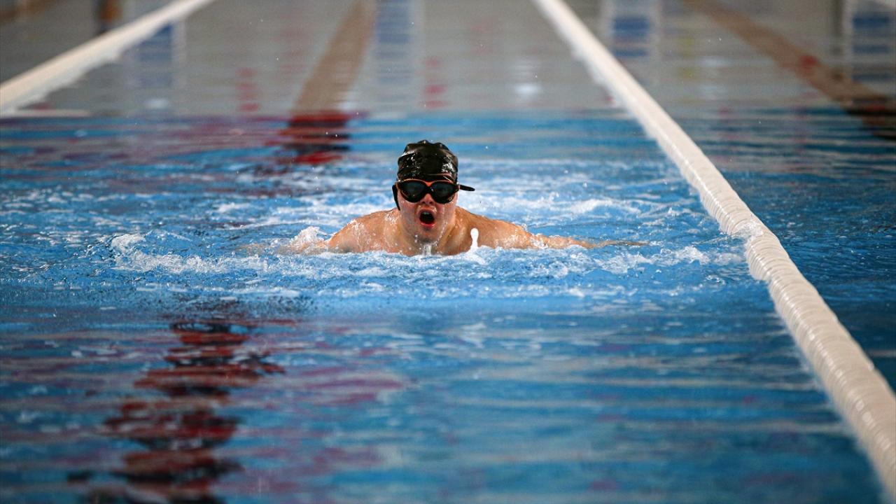 Adana'da 21 yaşındaki down sendromlu Mehmet Şahin Çağlar, ailesinin yönlendirmesiyle başladığı yüzmedeki gelişimini milli takıma seçilerek taçlandırmak için Özel Sporcular Türkiye Yüzme Şampiyonası'na hazırlanıyor.
